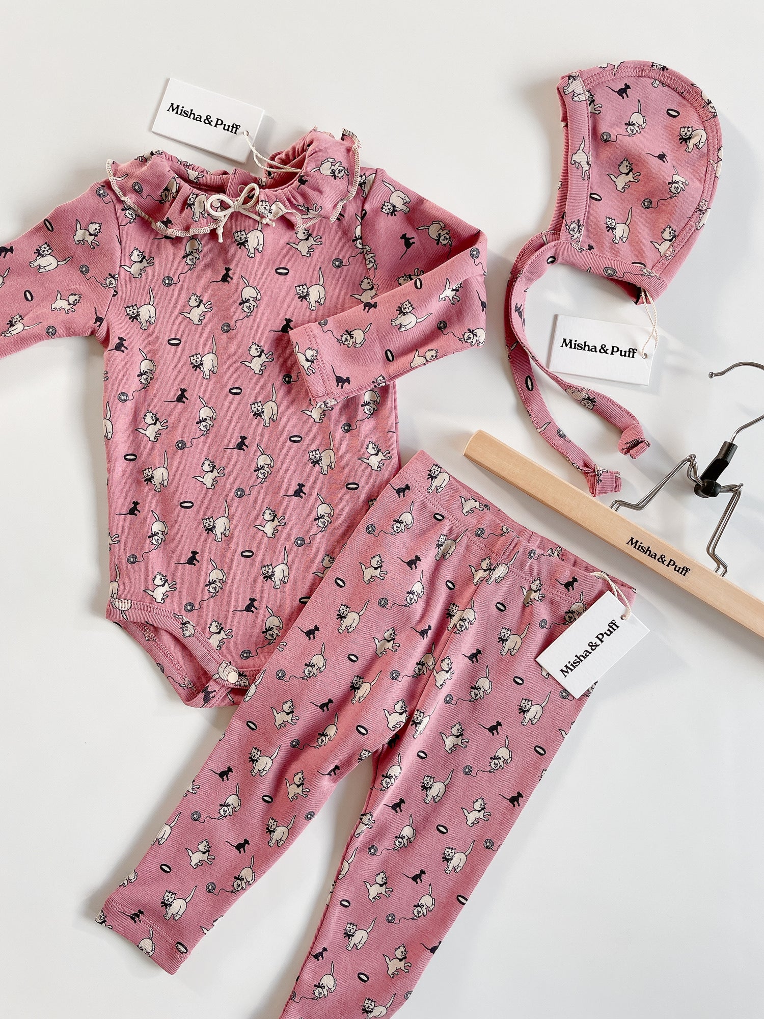 +Misha&Puff+ Baby Legging - Antique Rose Cat & Mouse