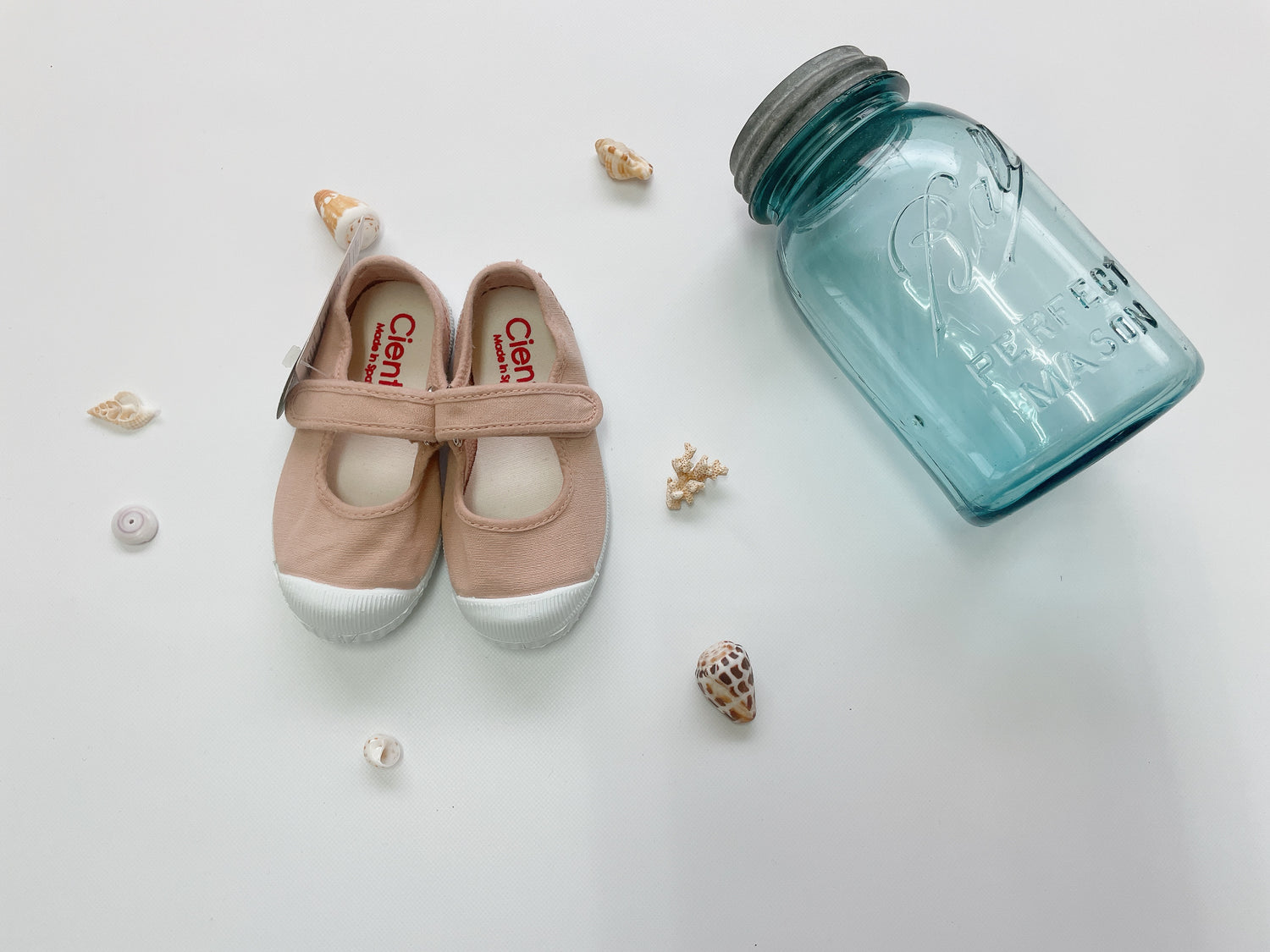 優しいカラーでクタっとした印象が小さな足元を大人顔負けに飾ってくれます。