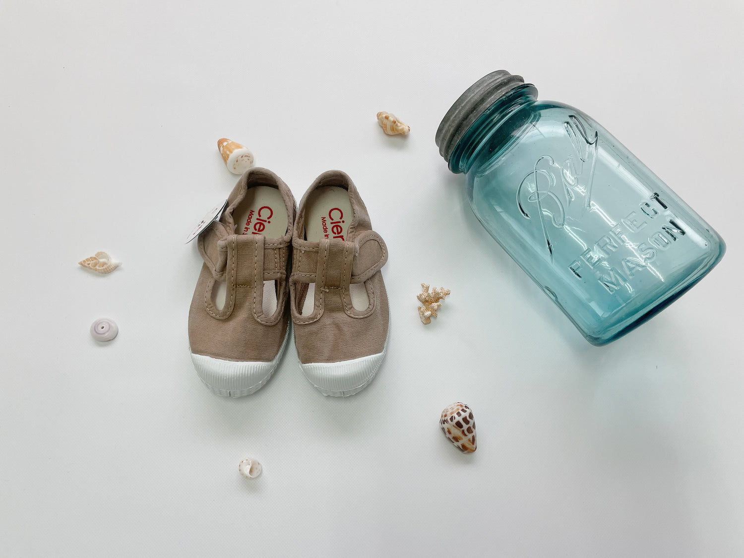 むら染タイプでクタっとした印象が小さな足元を大人顔負けに飾ってくれます。