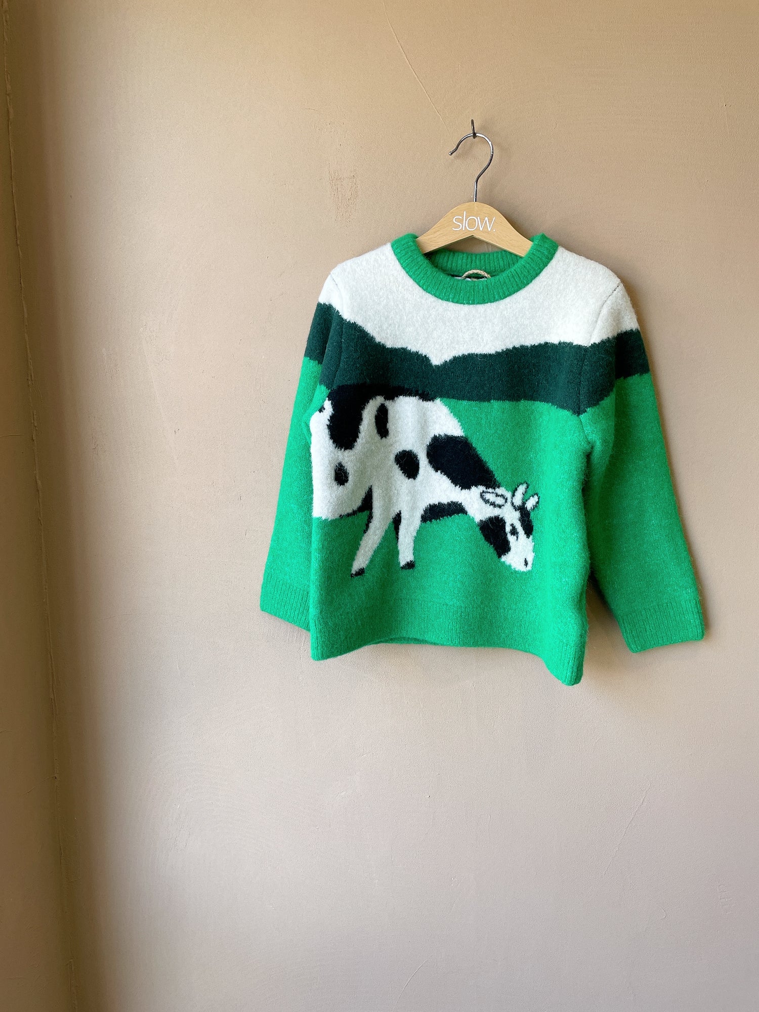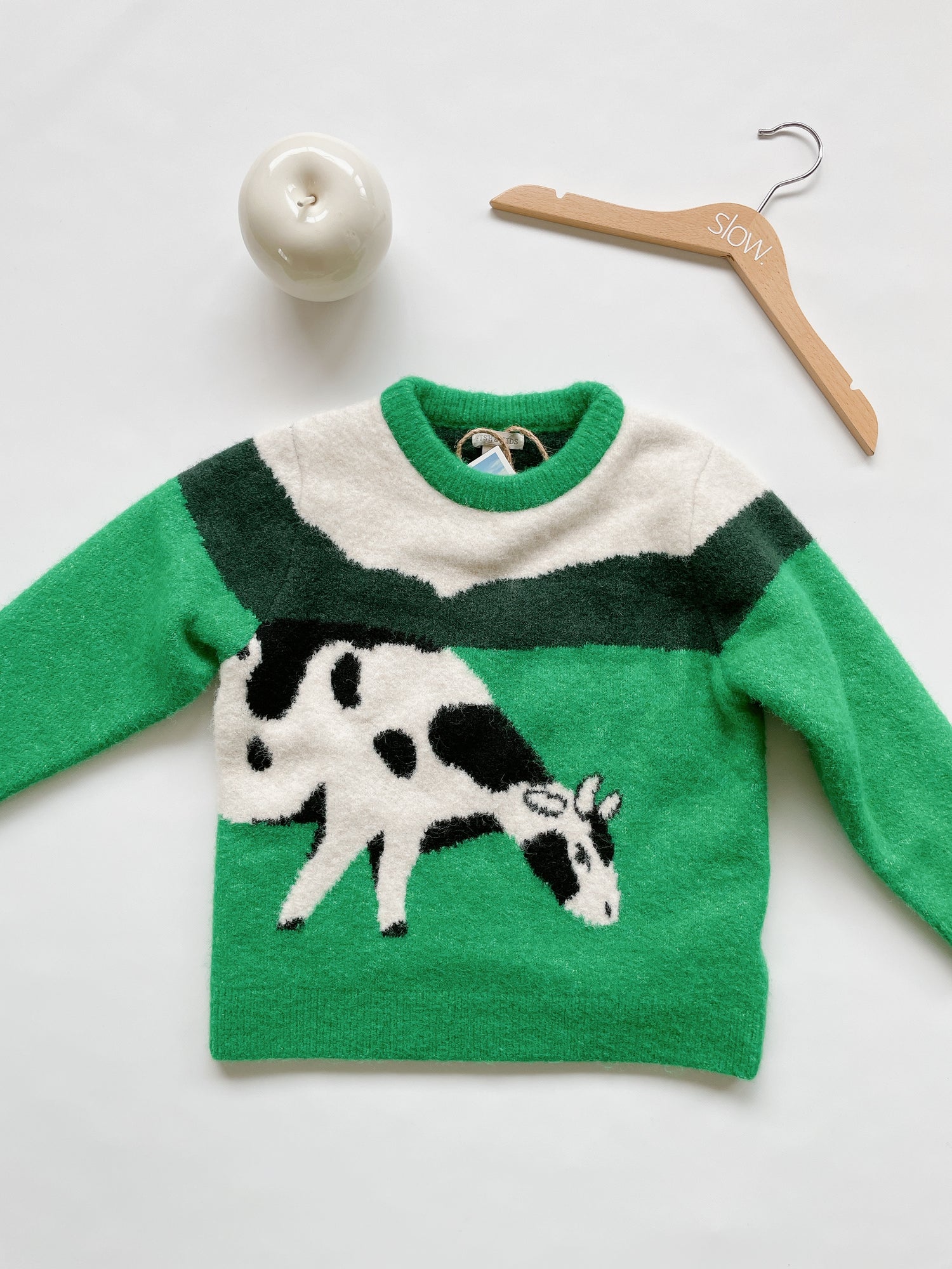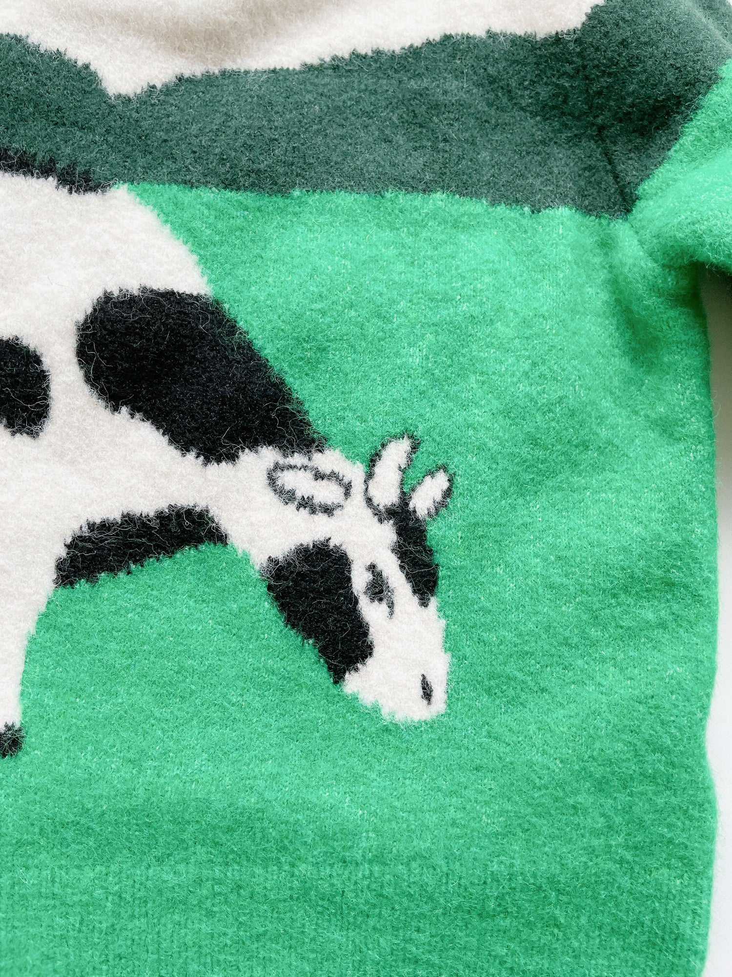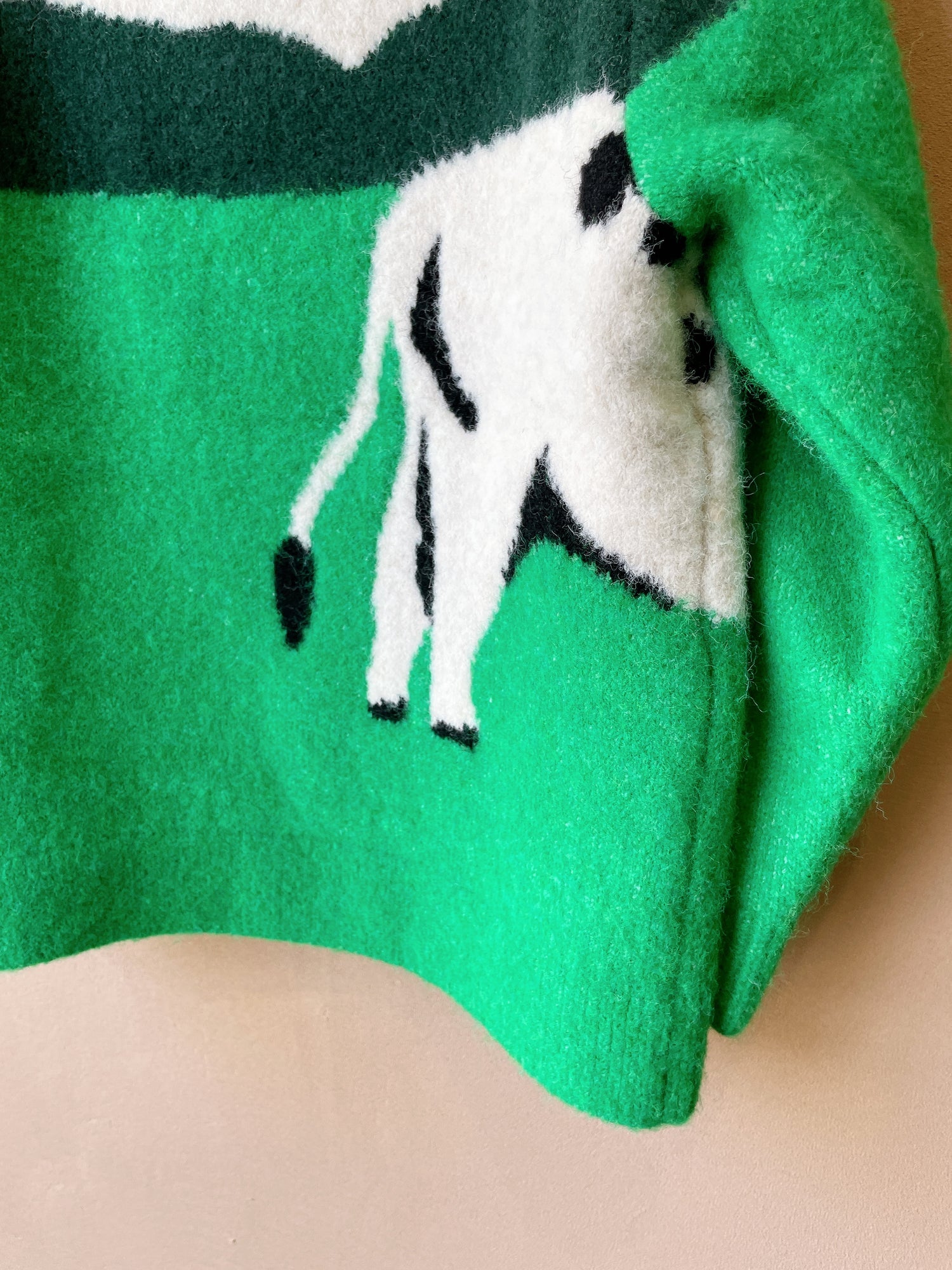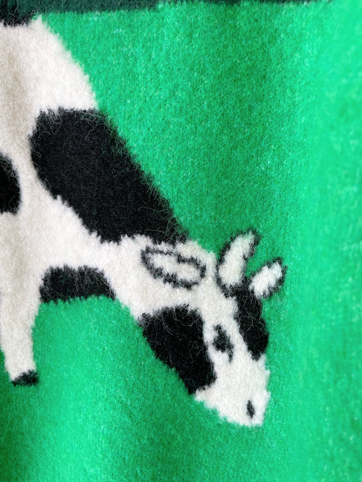 牛さんがキュートな暖かそうなニット。ヴィンテージな雰囲気が今の気分。