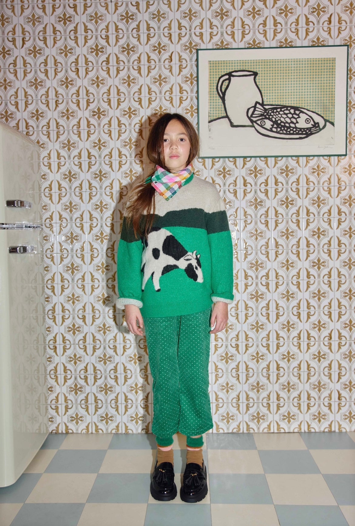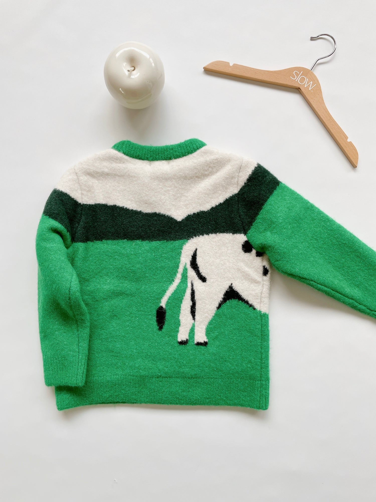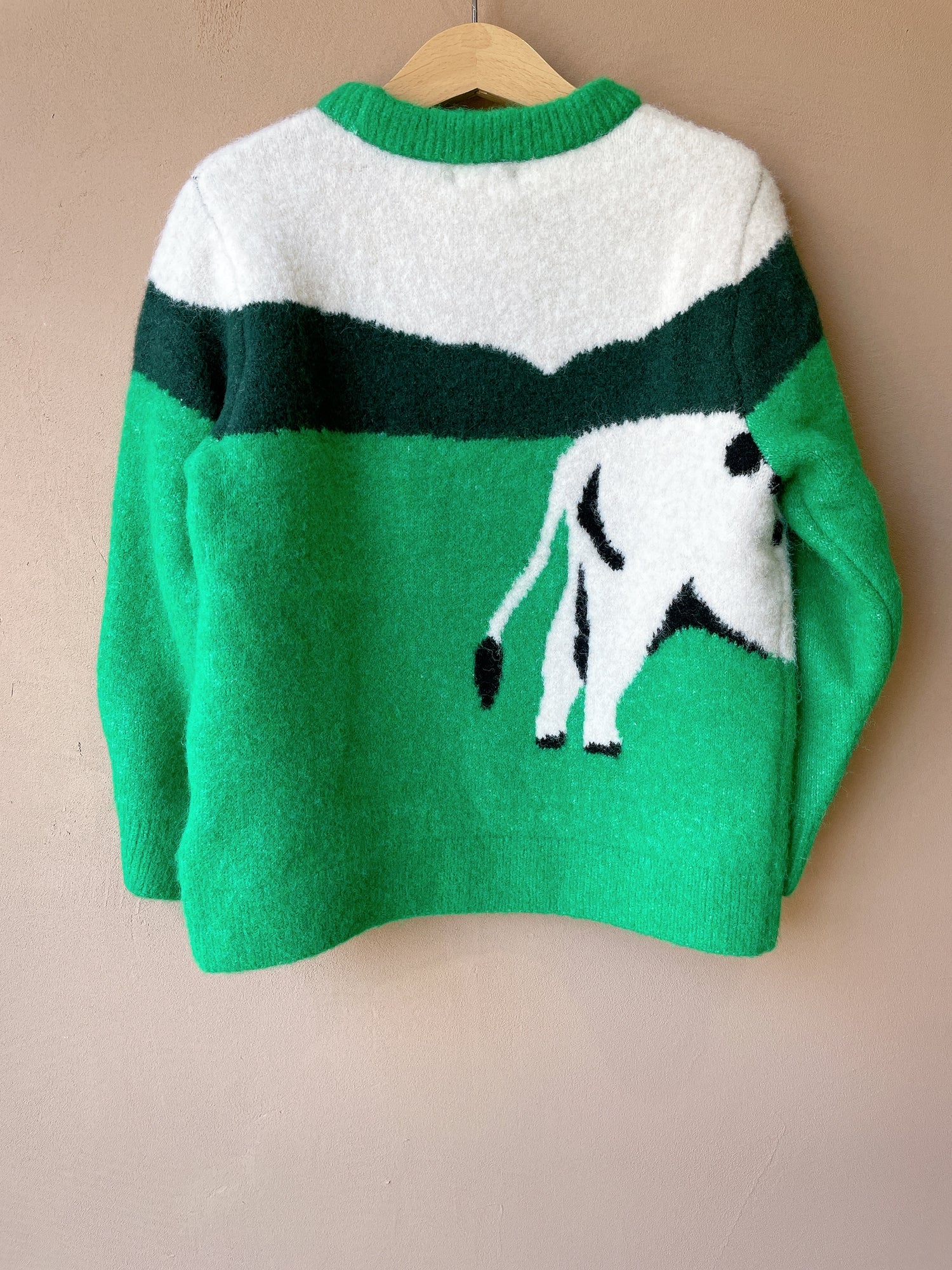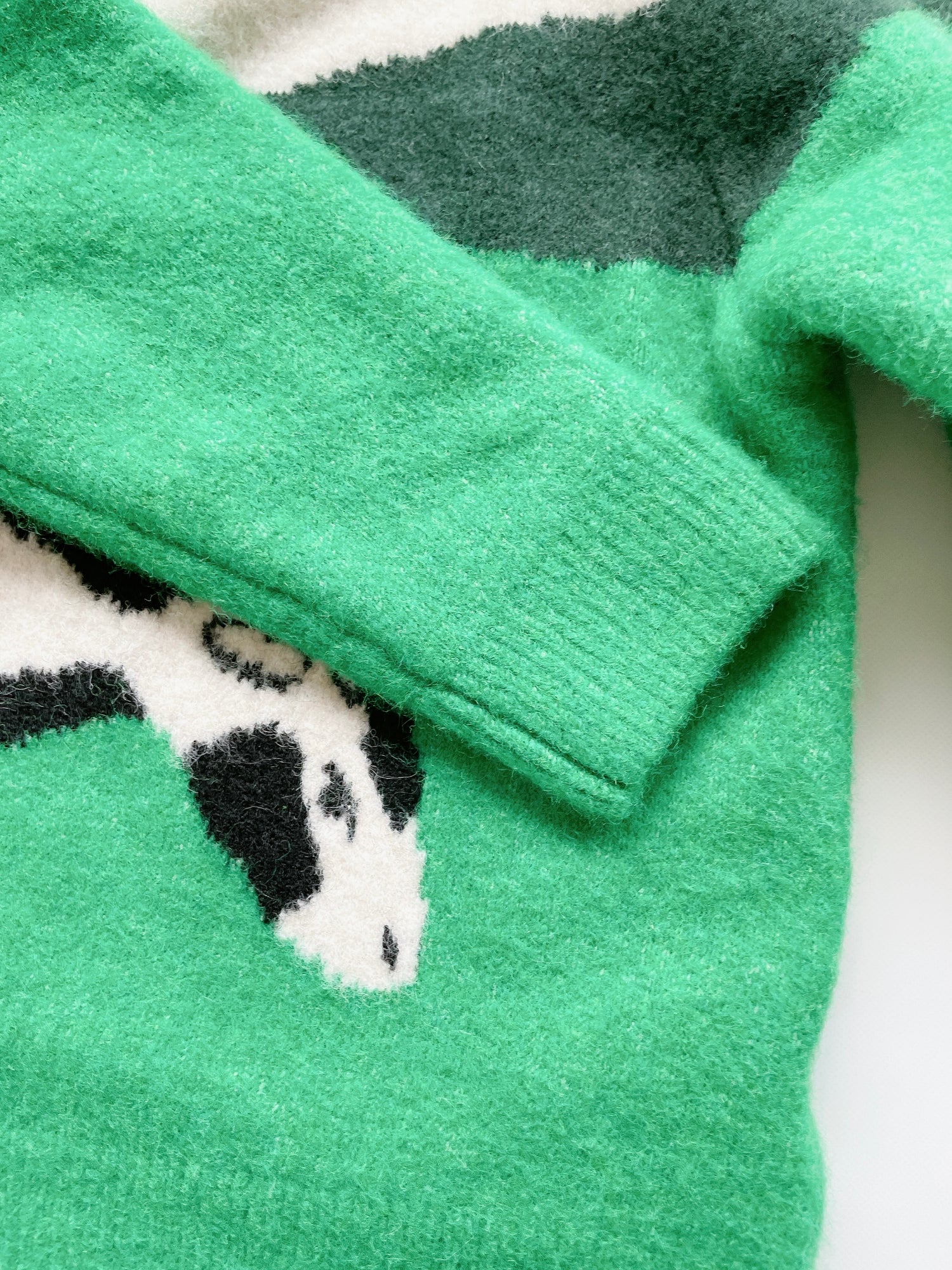 牛さんがキュートな暖かそうなニット。ヴィンテージな雰囲気が今の気分。