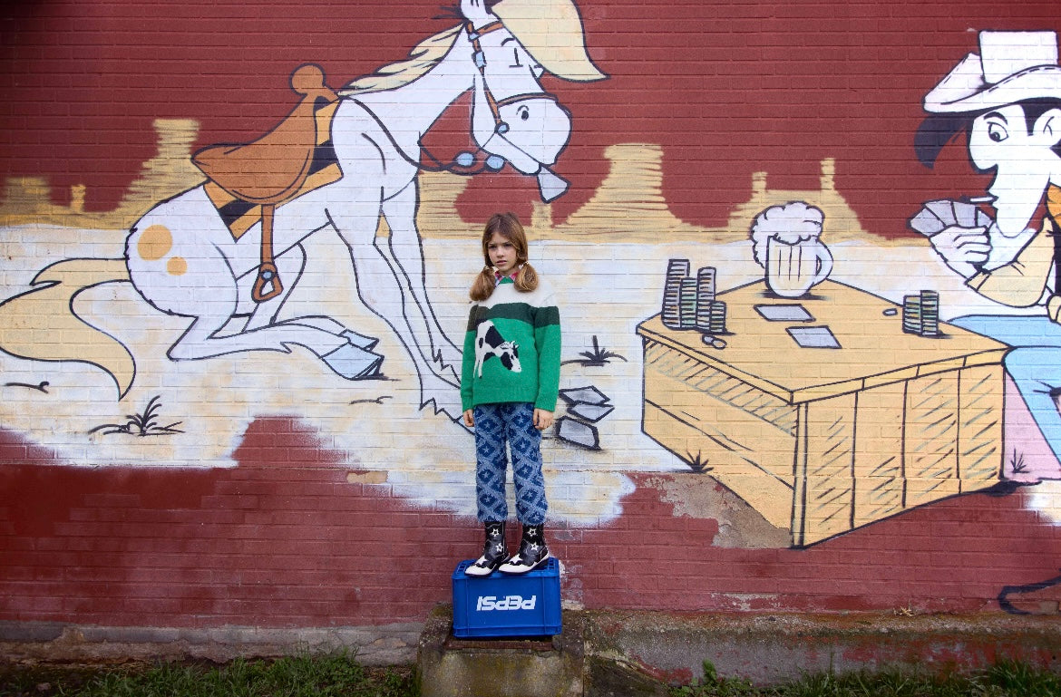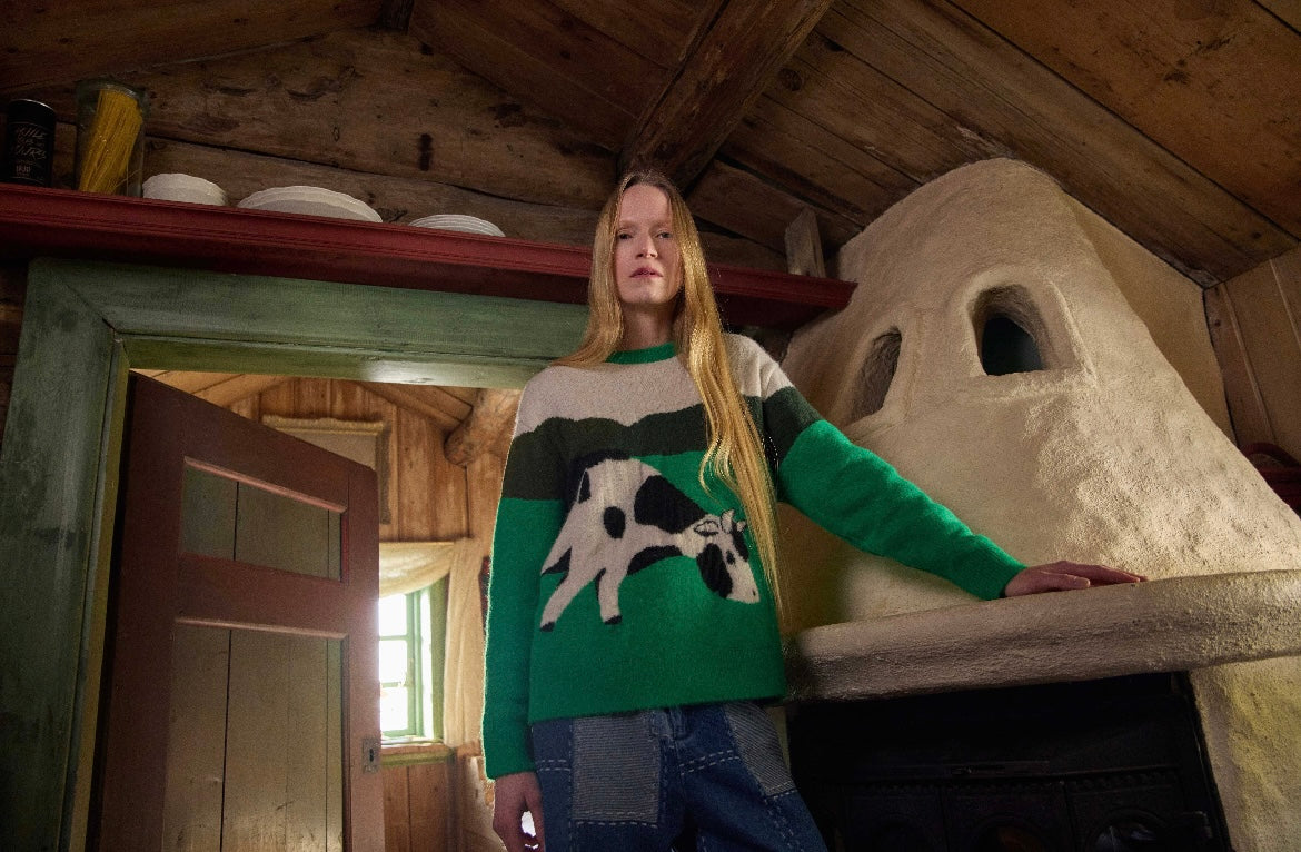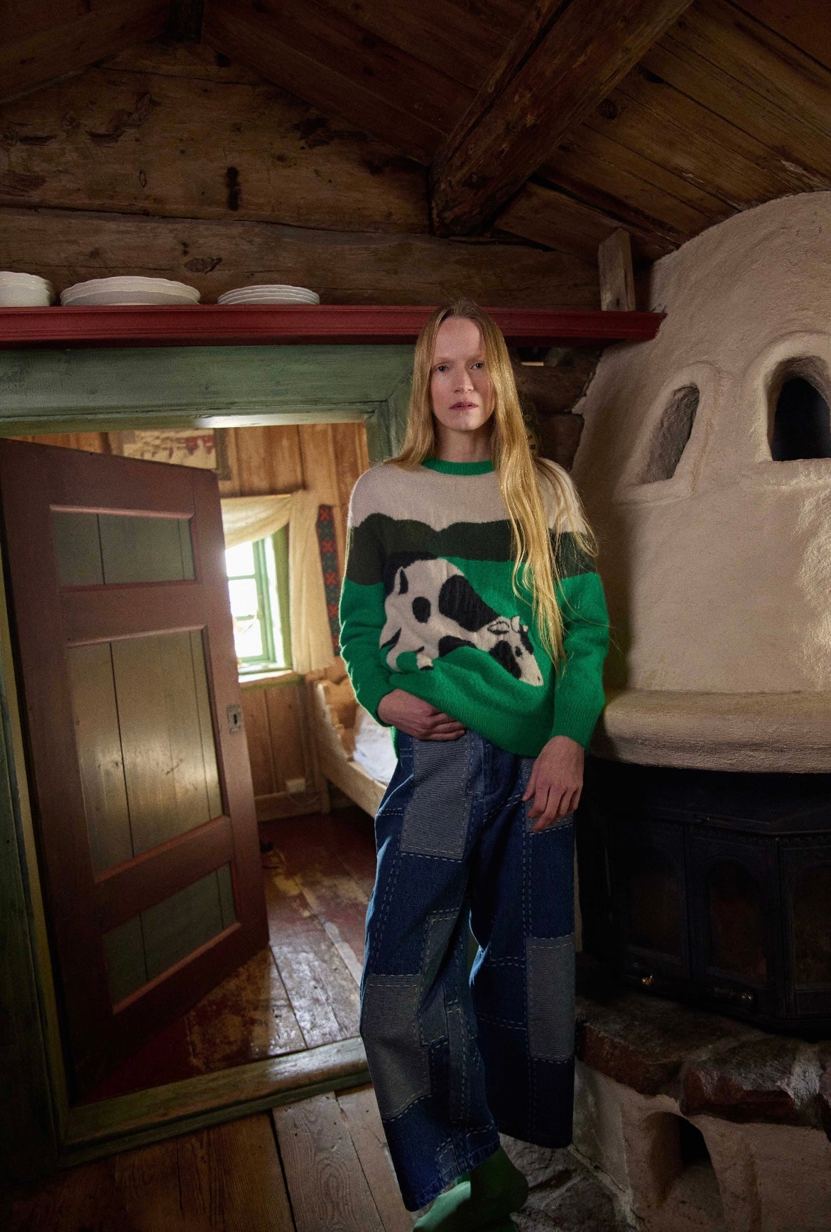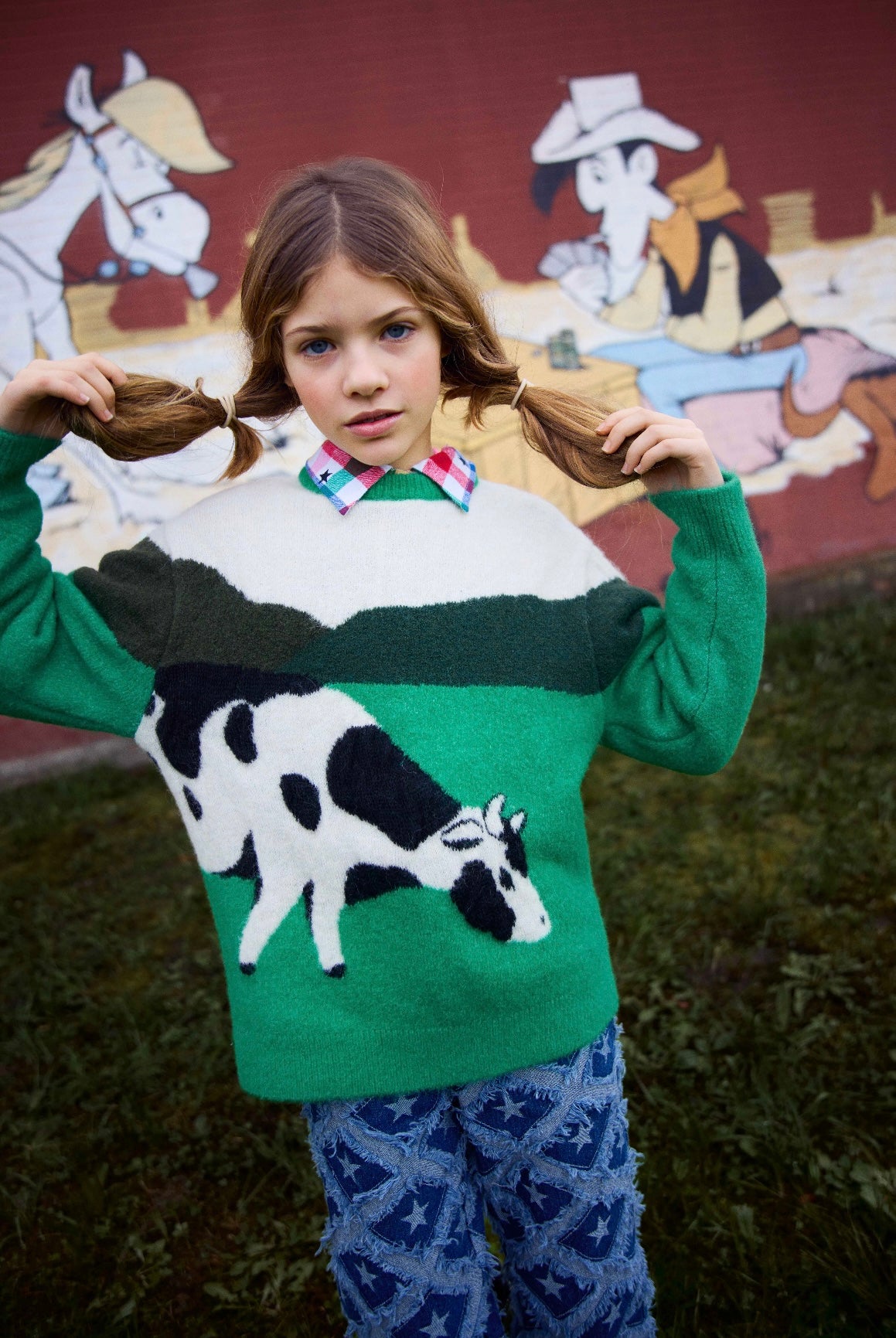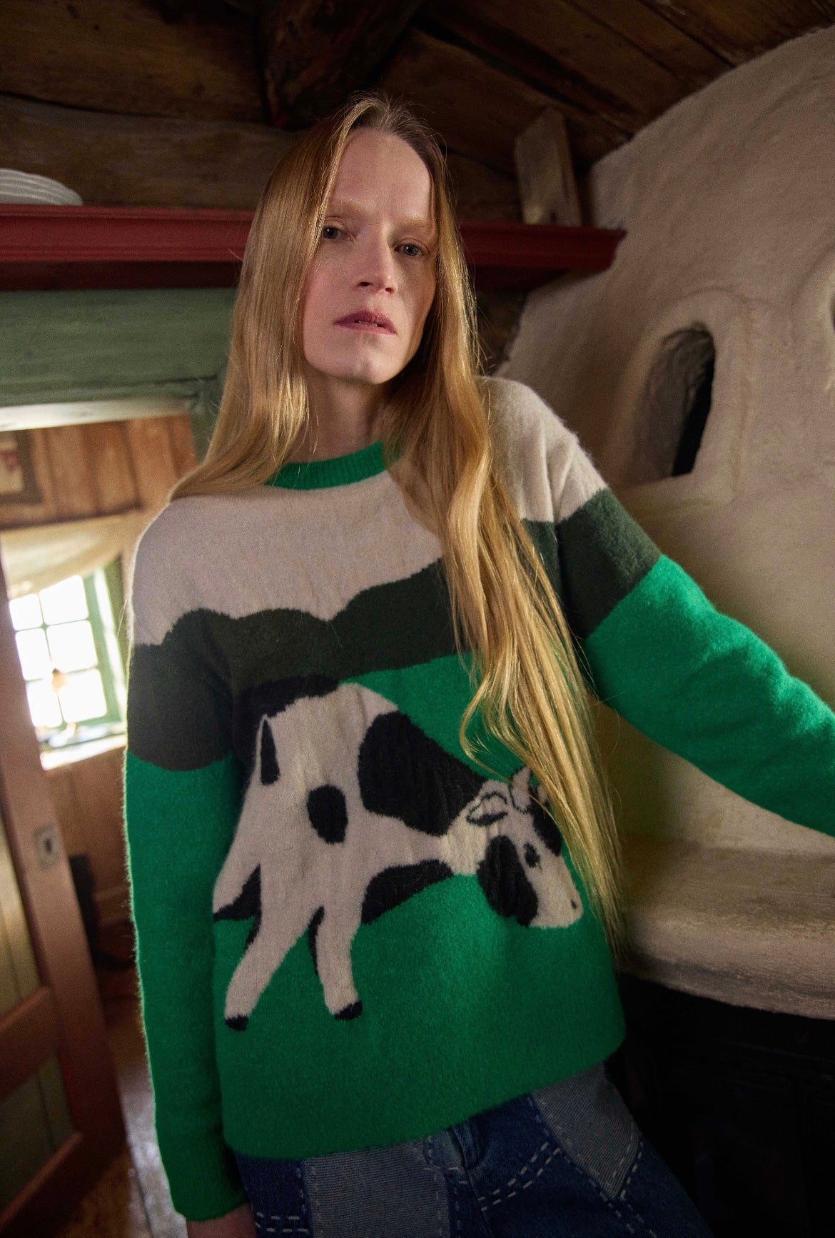 牛さんがキュートな暖かそうなニット。ヴィンテージな雰囲気が今の気分。