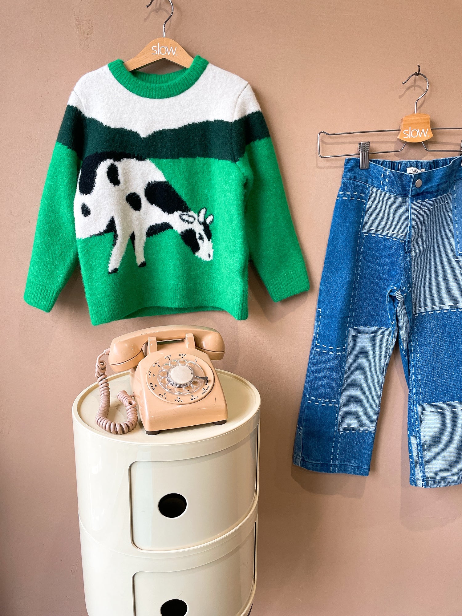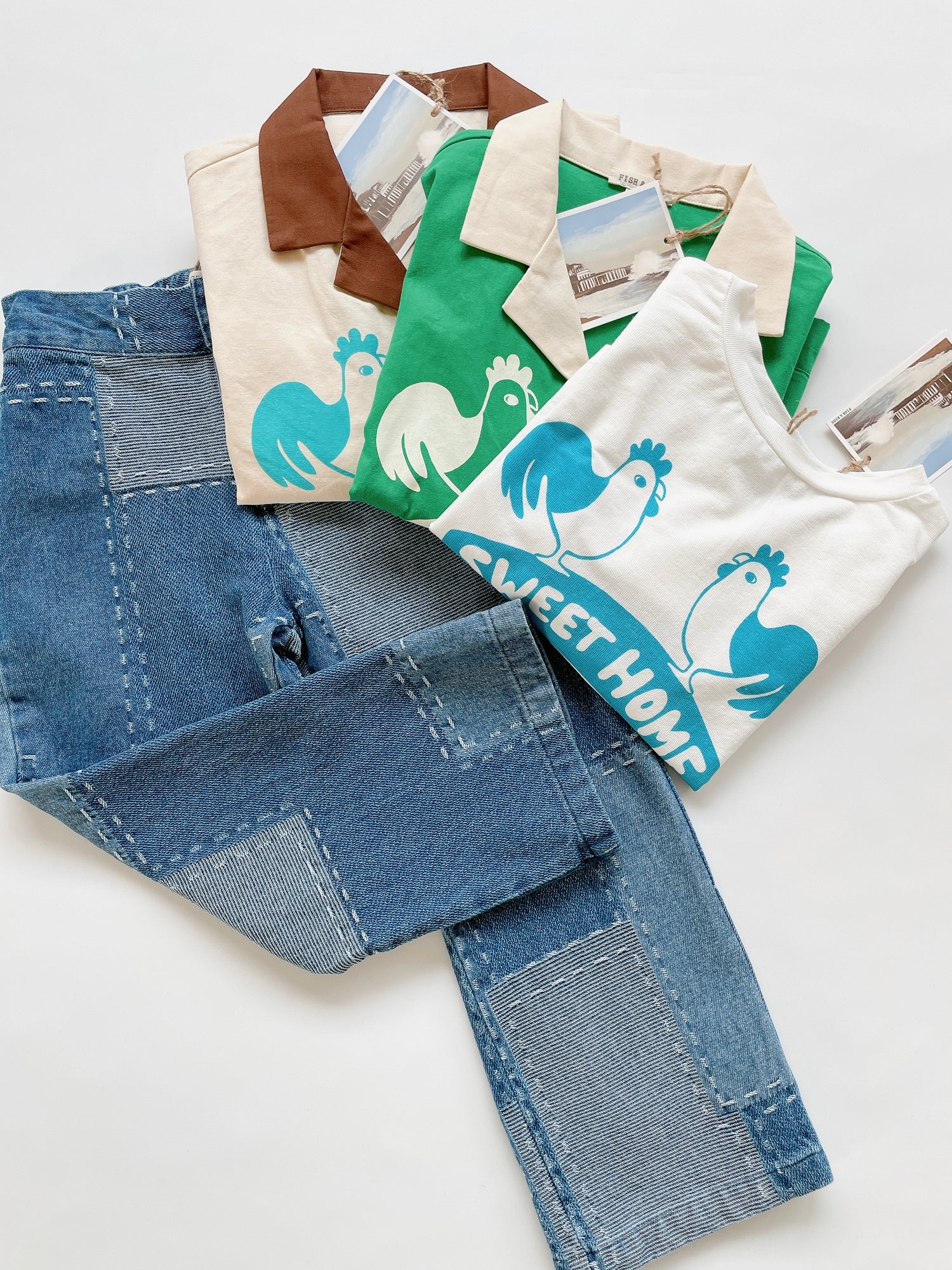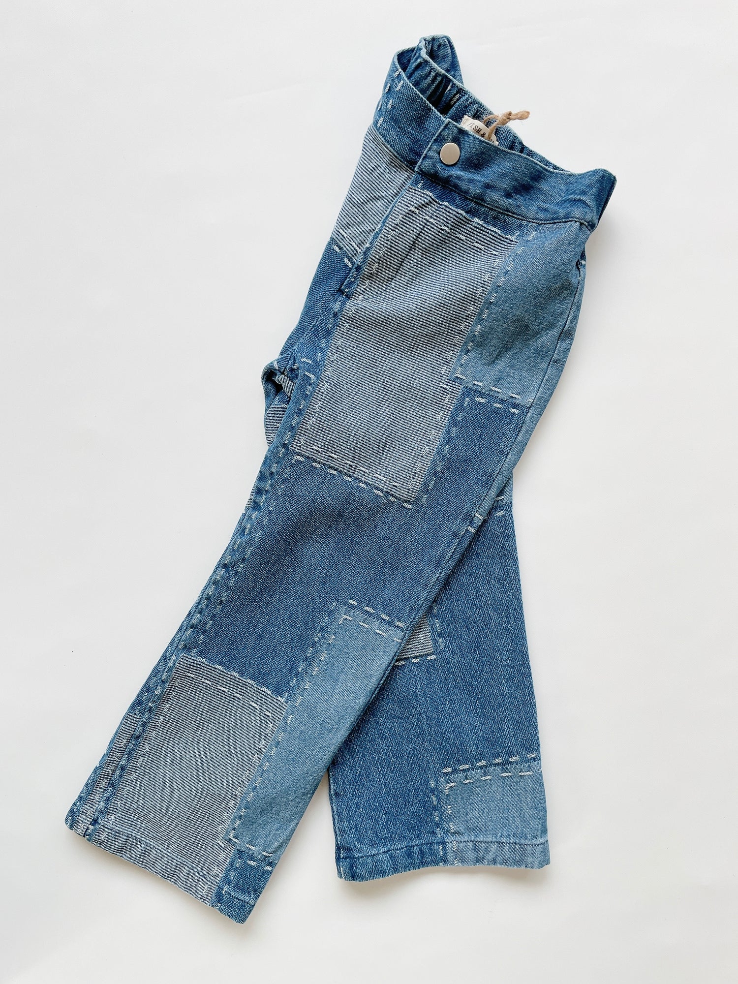 +FISH&KIDS+ DENIM PATCHWORK PANTS