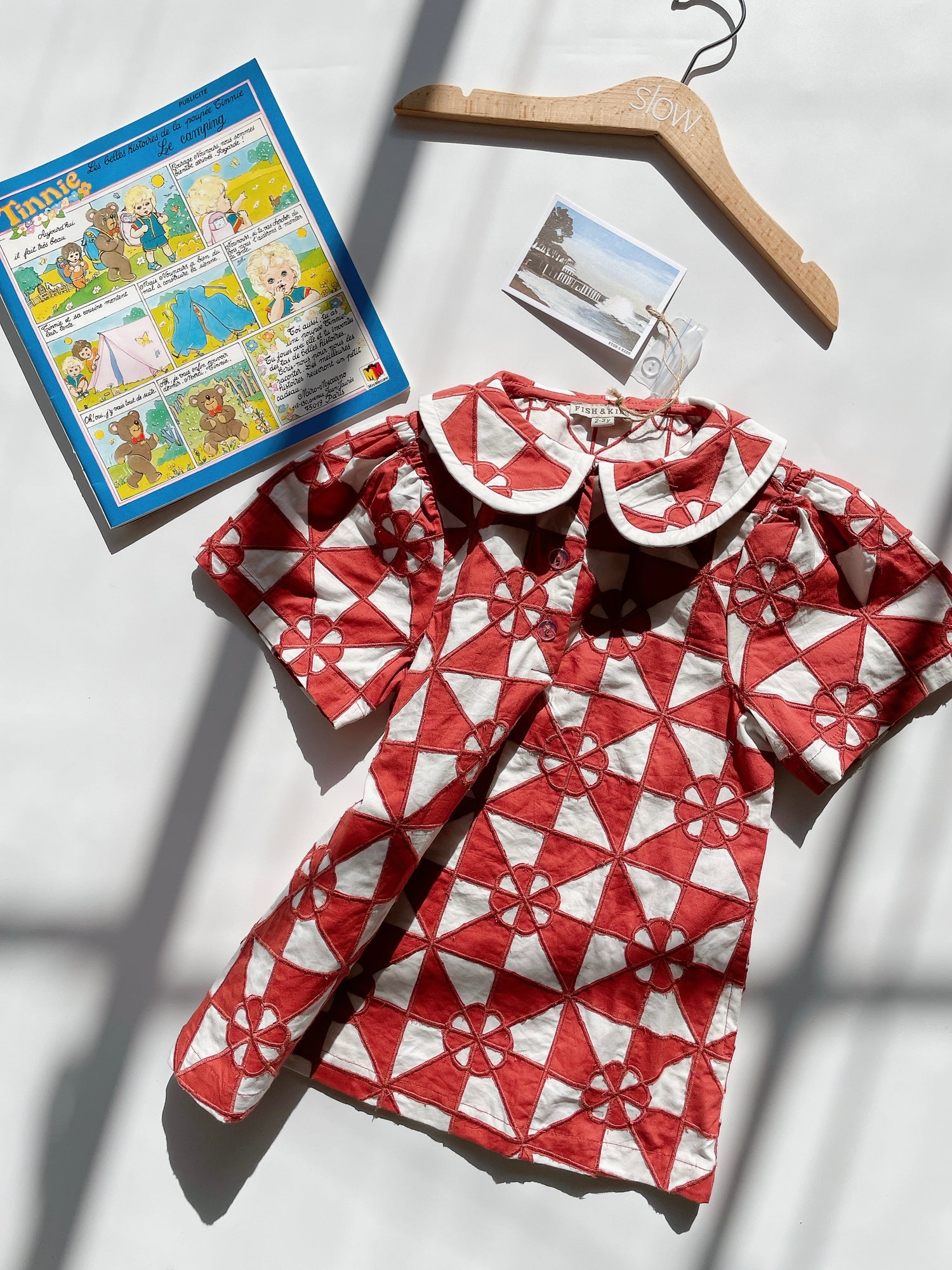 FISH&KIDSのパッチワークは非常に繊細な生地です。生地の制作過程において糸の不始末、チャコペンの跡などは普通に見られ、生地の特性であるとブランドより情報を頂いています。念のため記載しておりますが今年も掲載させて頂きます。