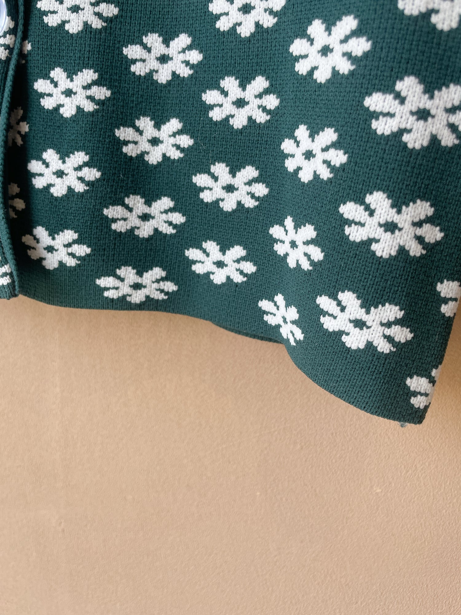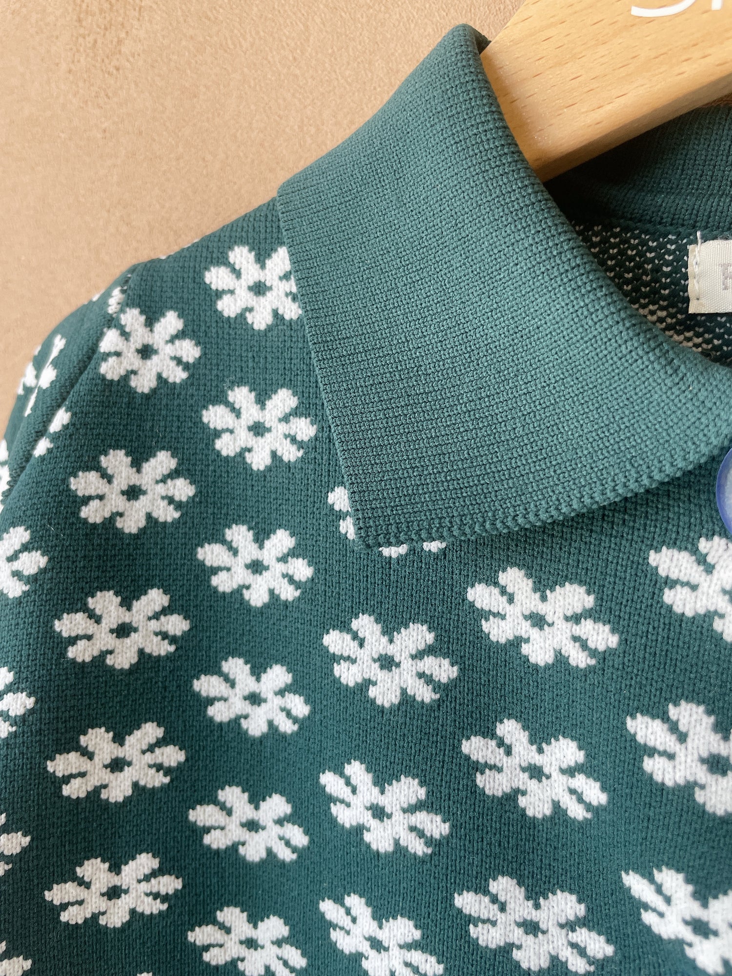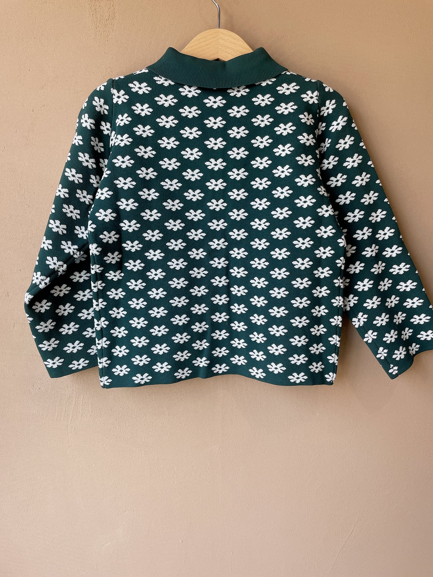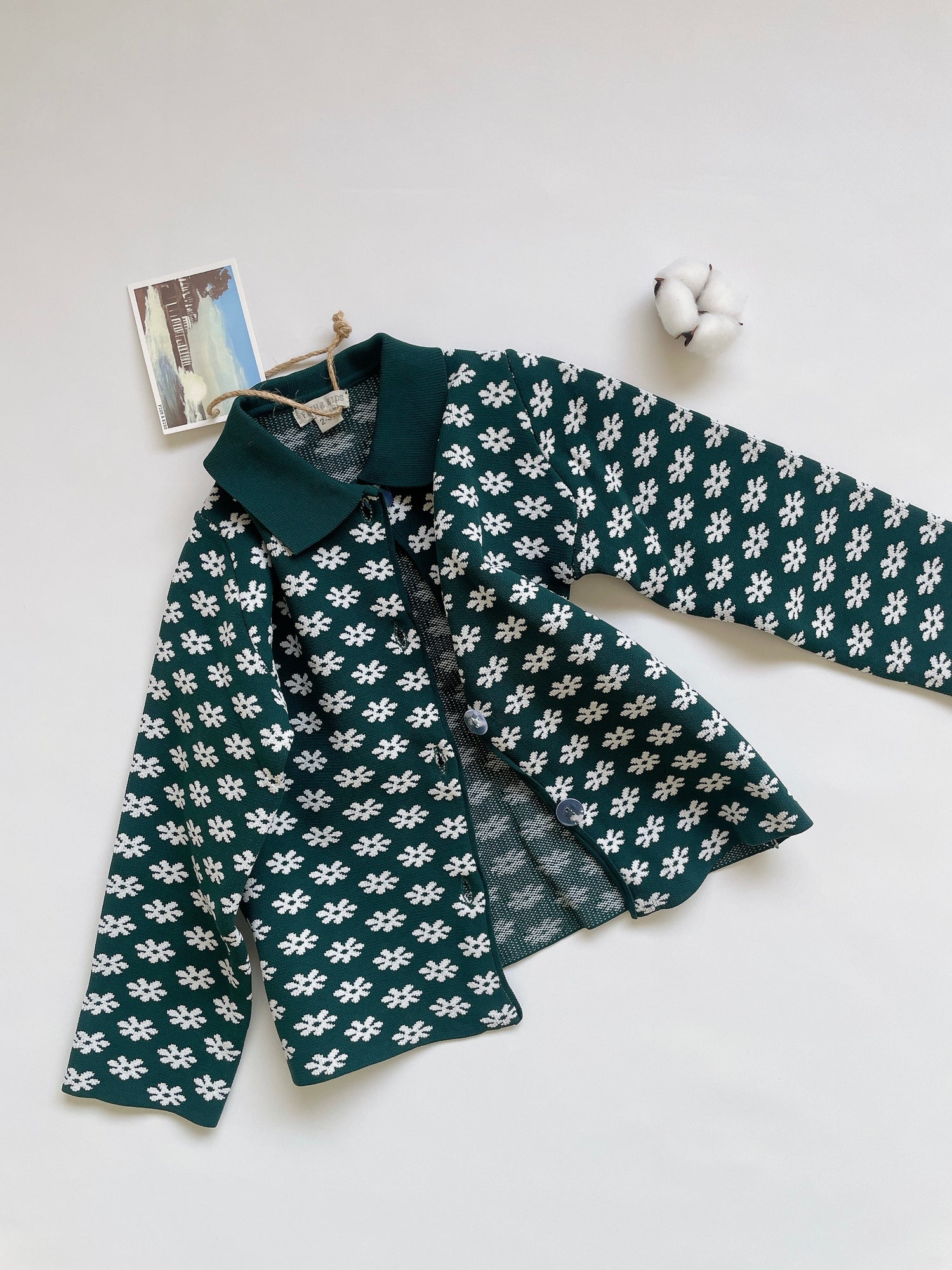文字通り定番レトロな襟付きカーディガン。前のボタンはクリアでfish&kidsらしさ満点。素材はナイロンですがイメージとしては毛羽立たないしっかりとしたニットという感じです。
