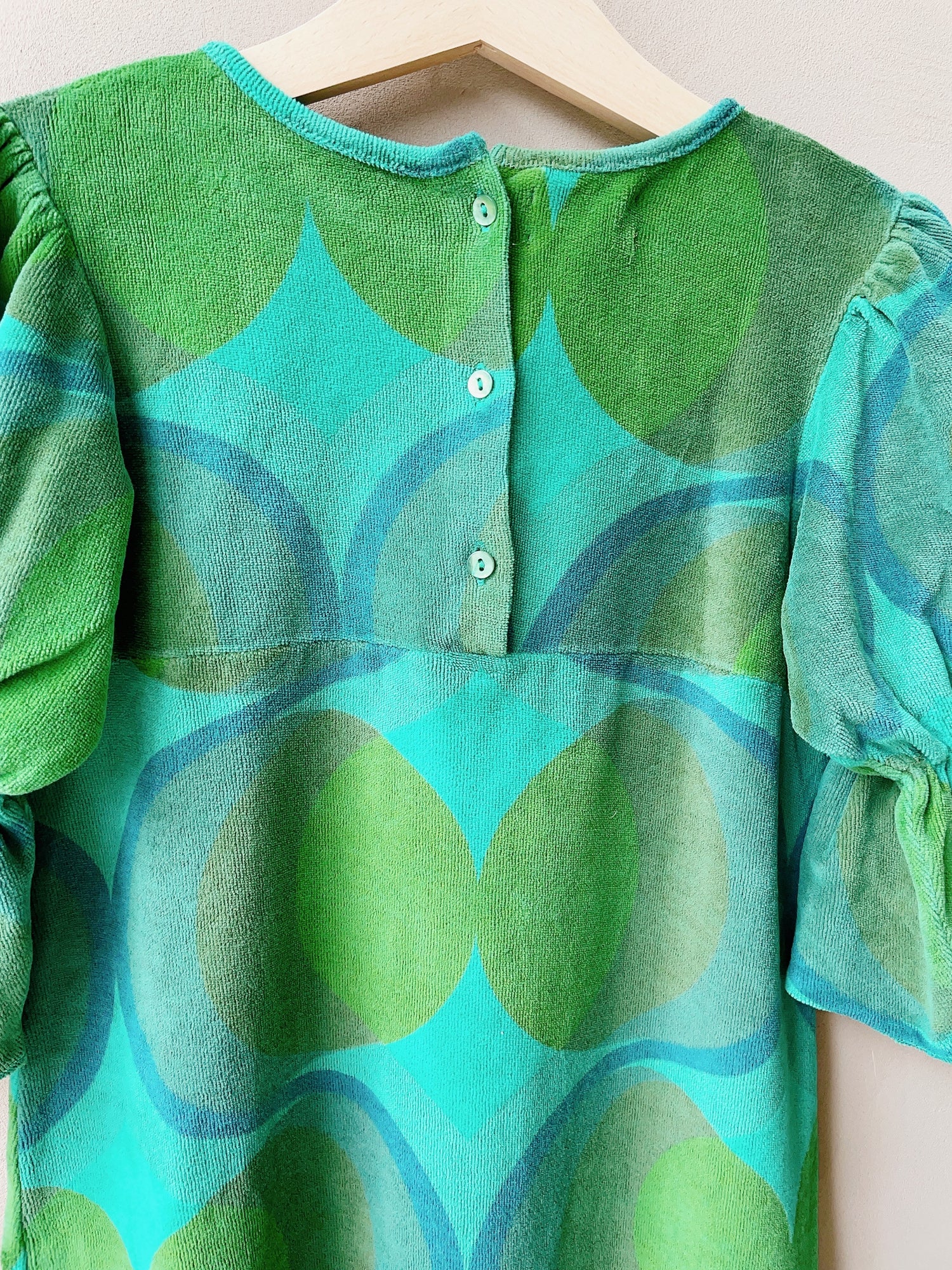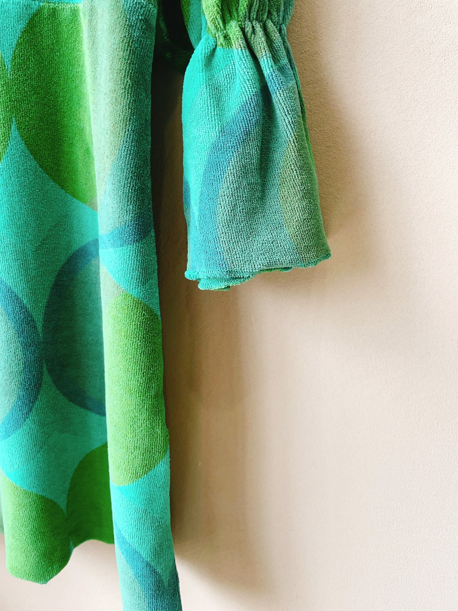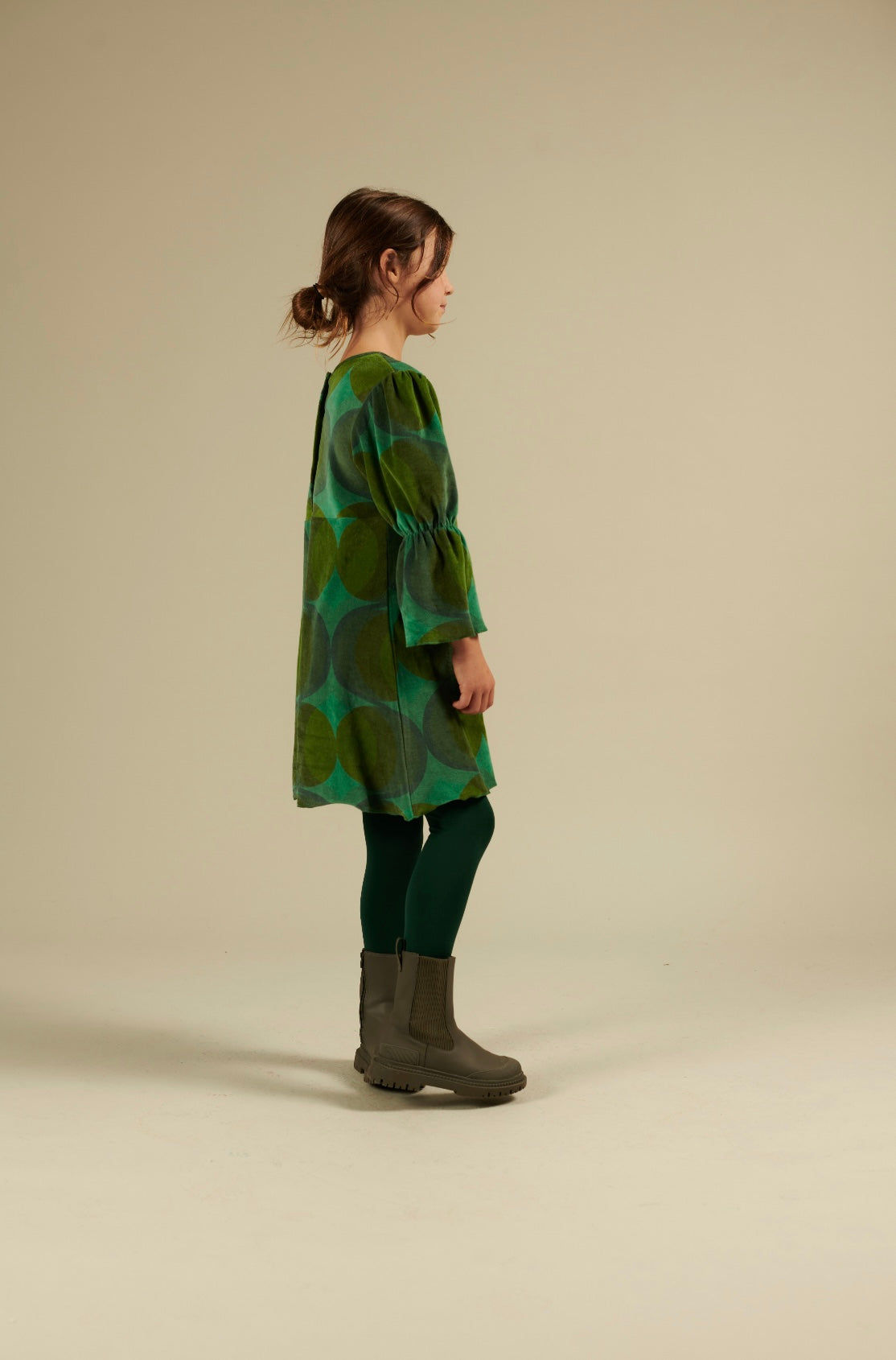 スペースエイジ的なレトロシックなドレス。ダークカラーのドレスは明るい色のタイツで遊ぶとキュート◎テリー感があるのでテリーベロアといった表現がしっくりくるのかもしれません。ハイウエストで切り返しがあり、スタイルアップ効果も。裾はくるっと少し巻き上がる仕様。