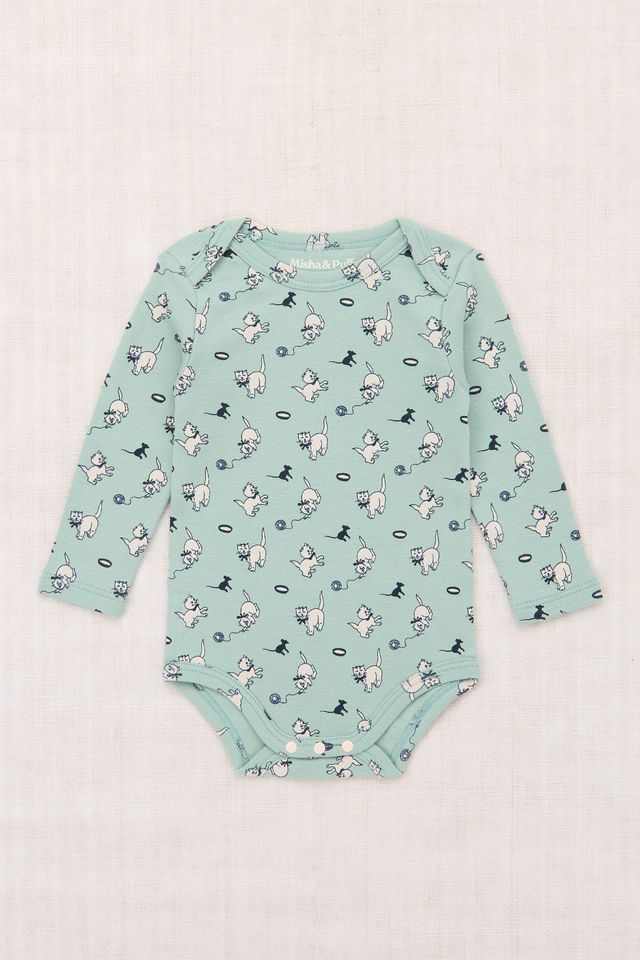 +Misha&Puff+ Baby Long Sleeve Lap Onesie - Sage Cat & Mouse