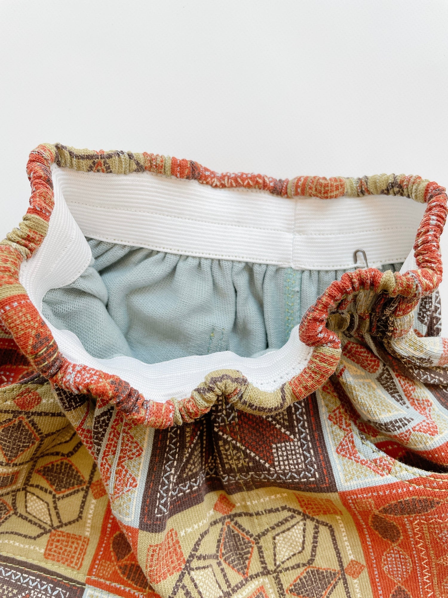 オーガニックピマコットンジャージーを使用したリラックス感のあるプルオンパンツ。ギャザー入りで伸縮性のあるウエスト、パッチポケット2つ、バックポケット1つが特徴。こちらのピマコットンジャージーは中厚でありながら柔らかくしっかりとした生地感が特徴です。