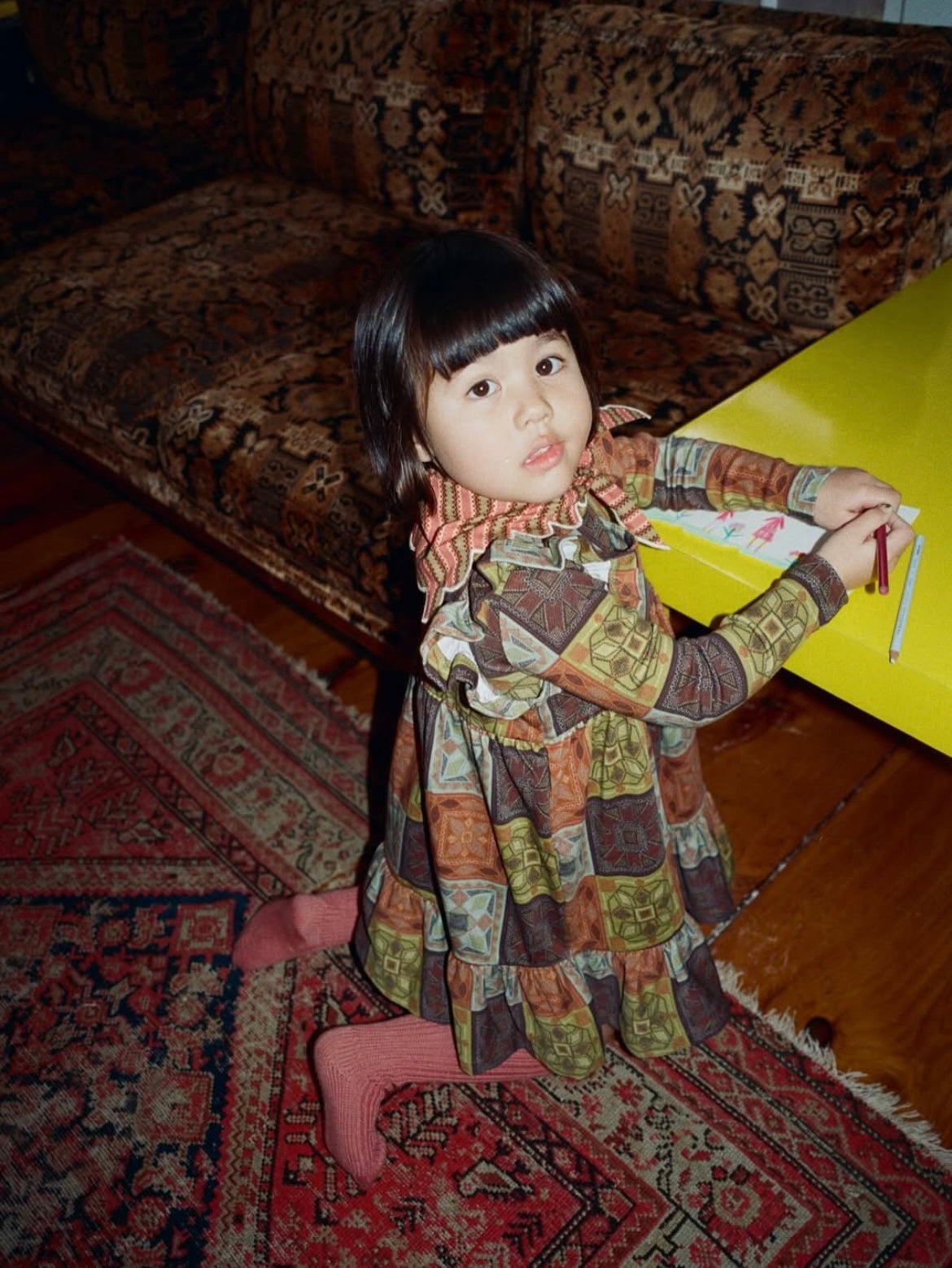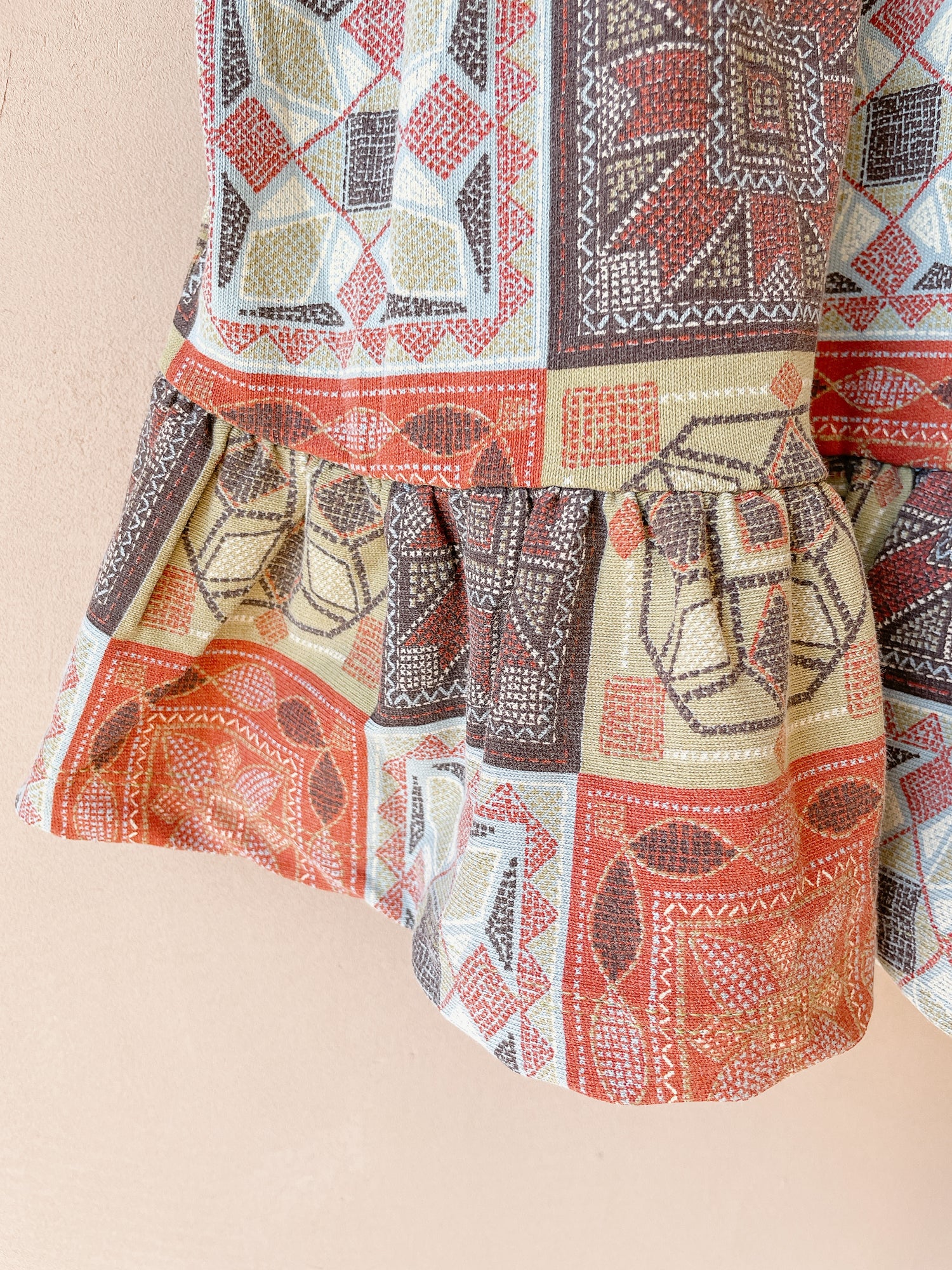こちらのクロスステッチプリントはビンテージデザインからインスピレーションを得て、今季の為に手書きでデザインされています。