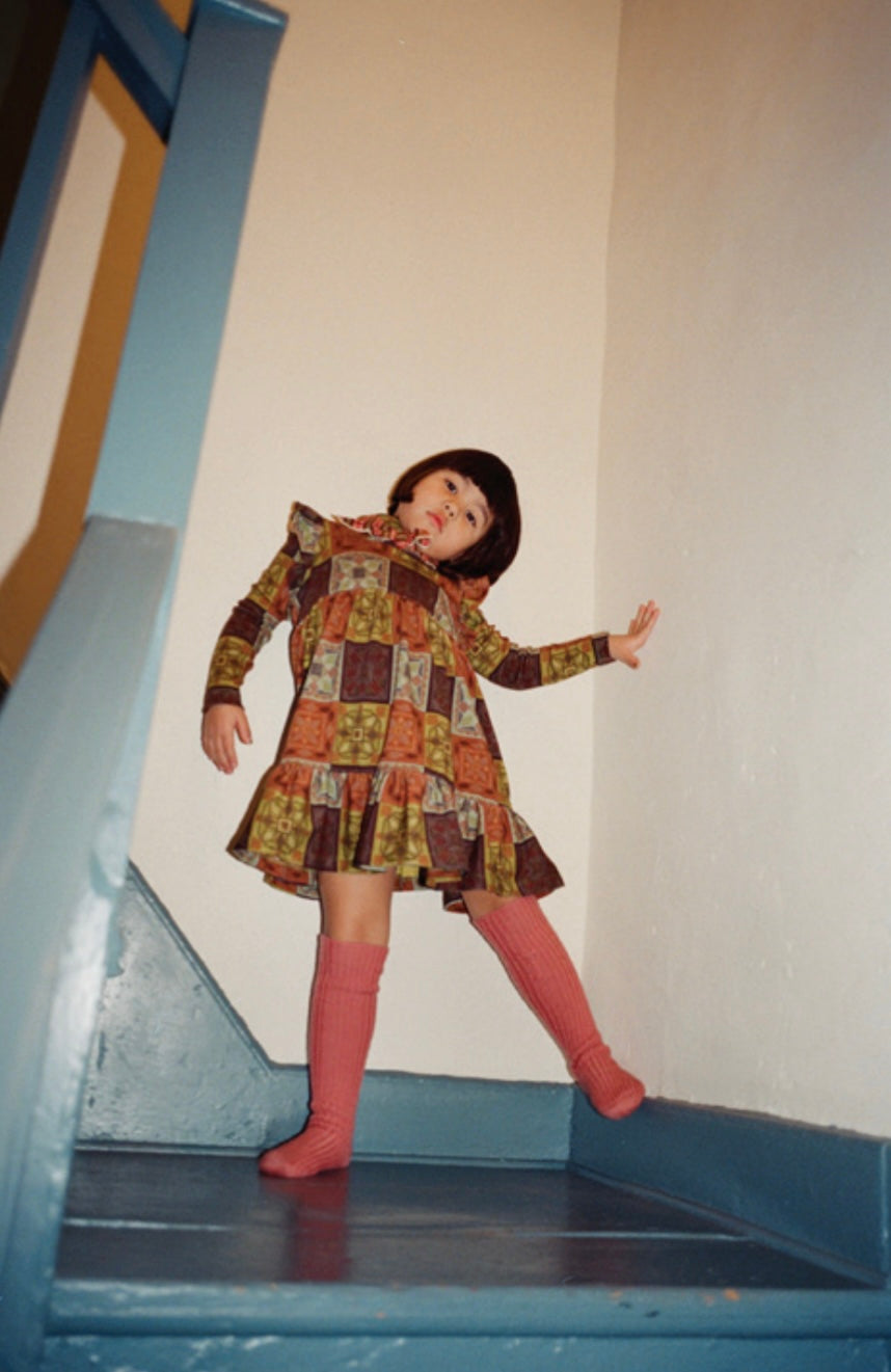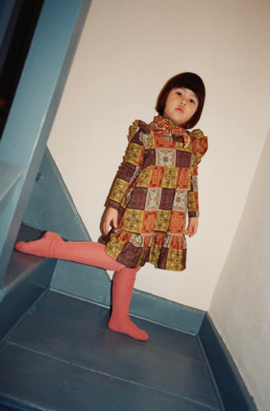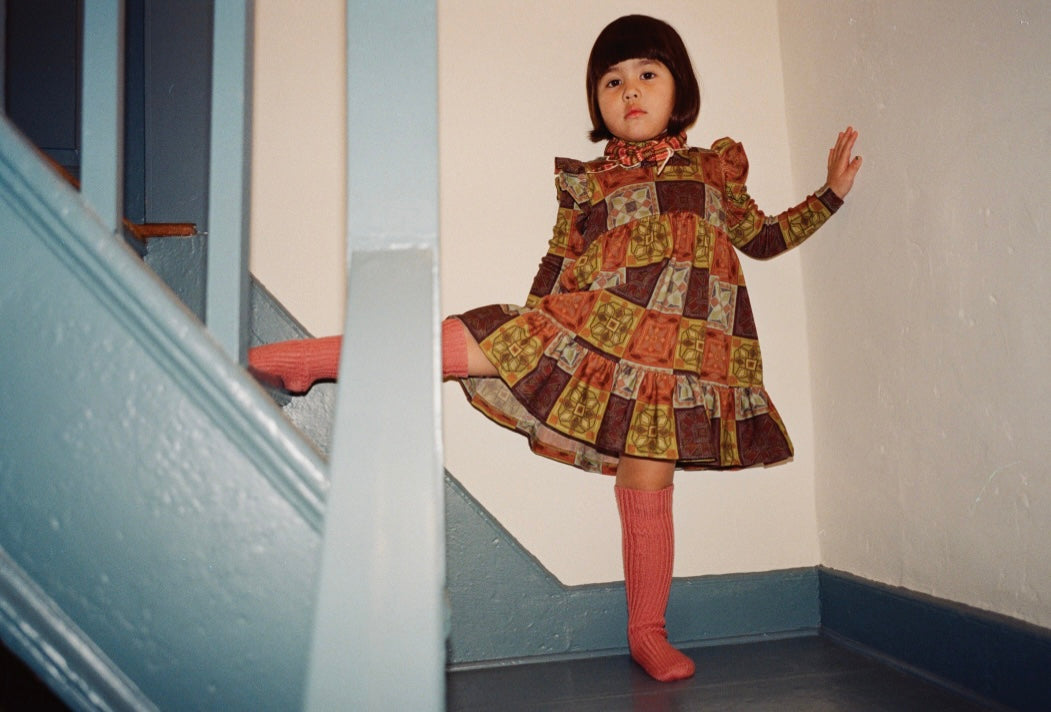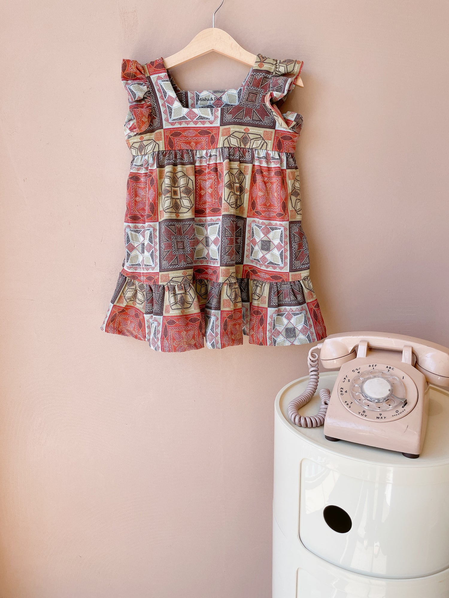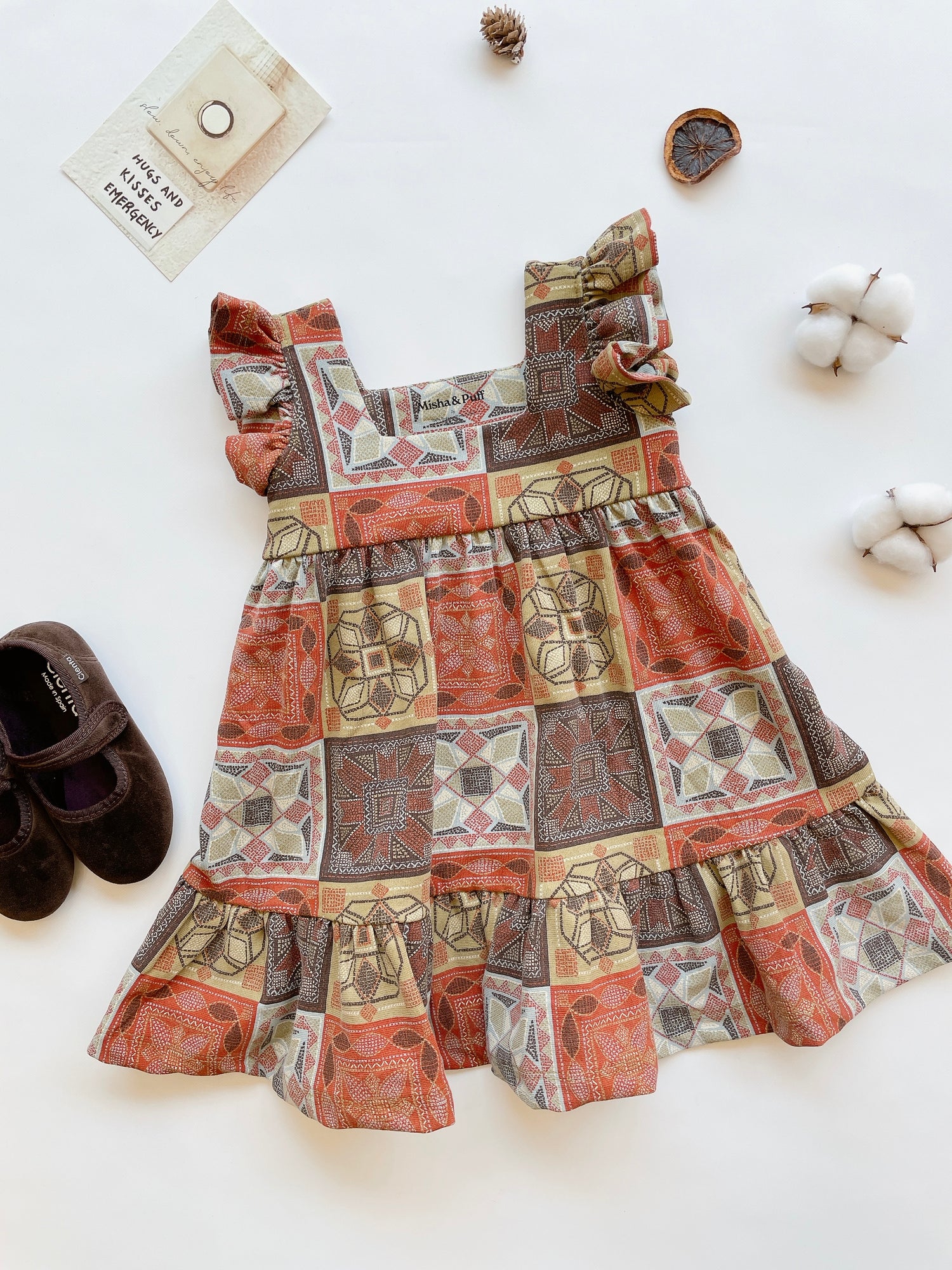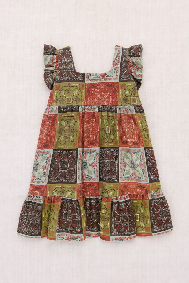 +Misha&Puff+ Ruffle Sleeve Dress - Chili Spice Cross Stitch