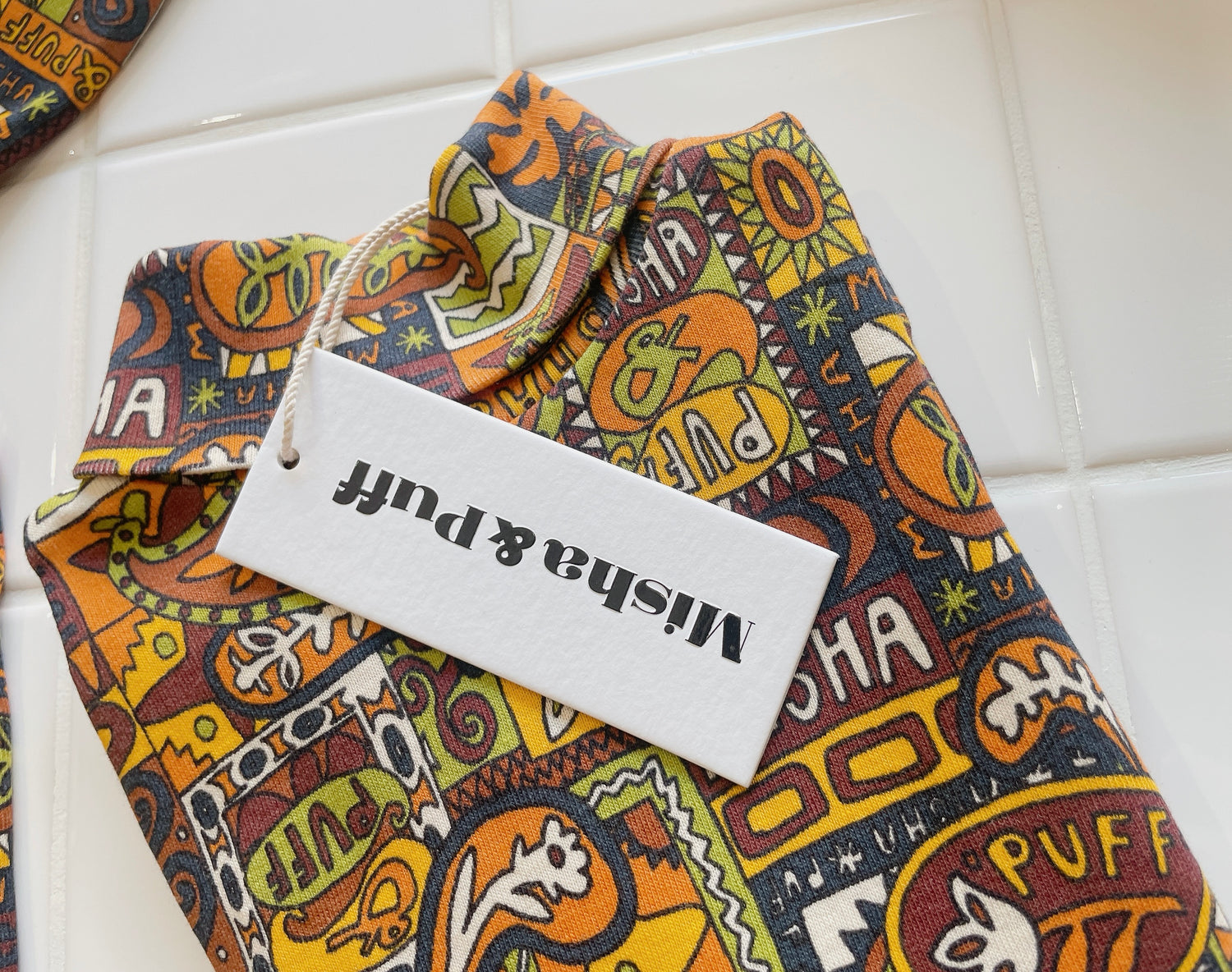 今季の特徴でもあるビンテージテイストが目を惹くmishaらしい柄。