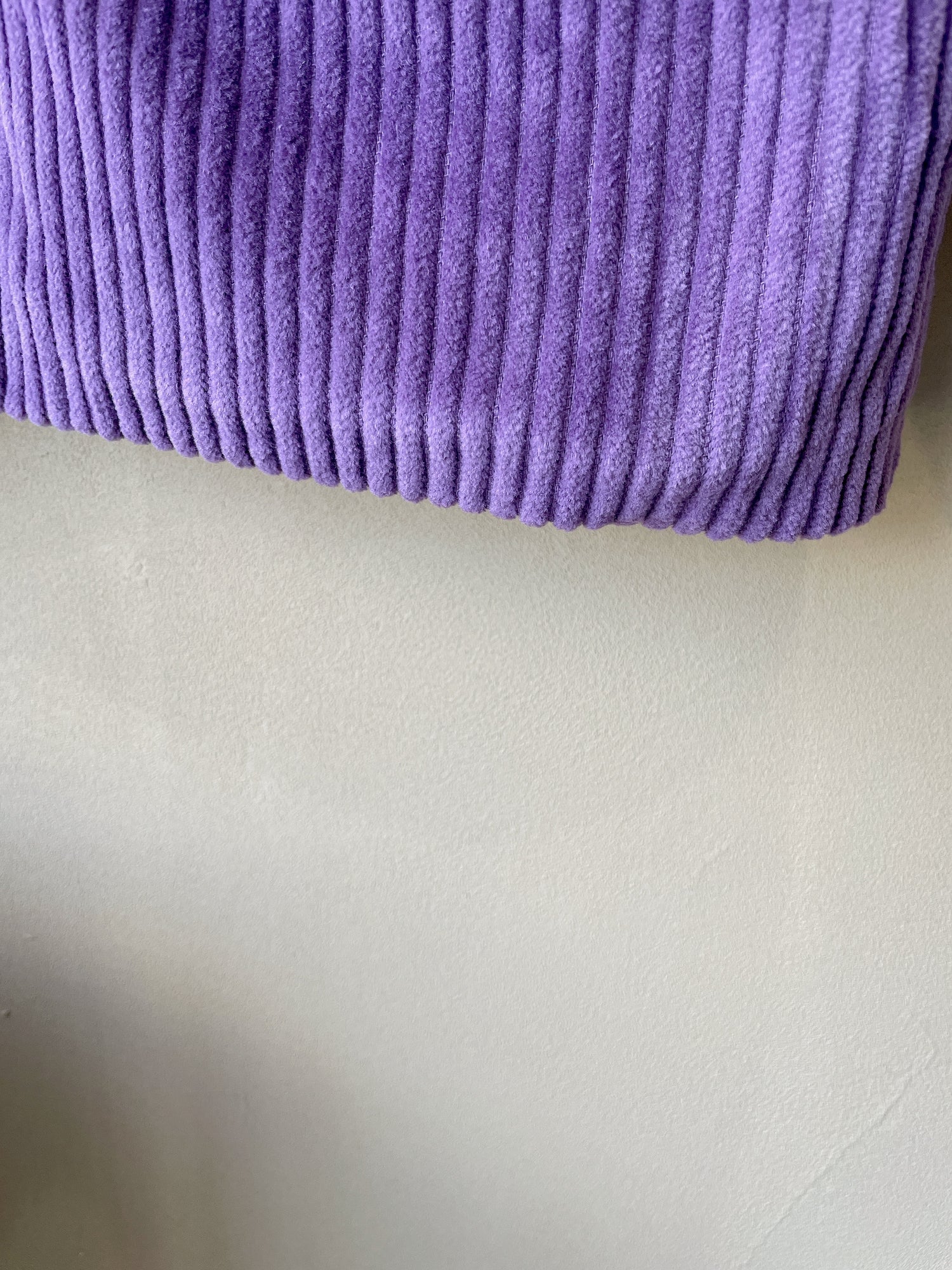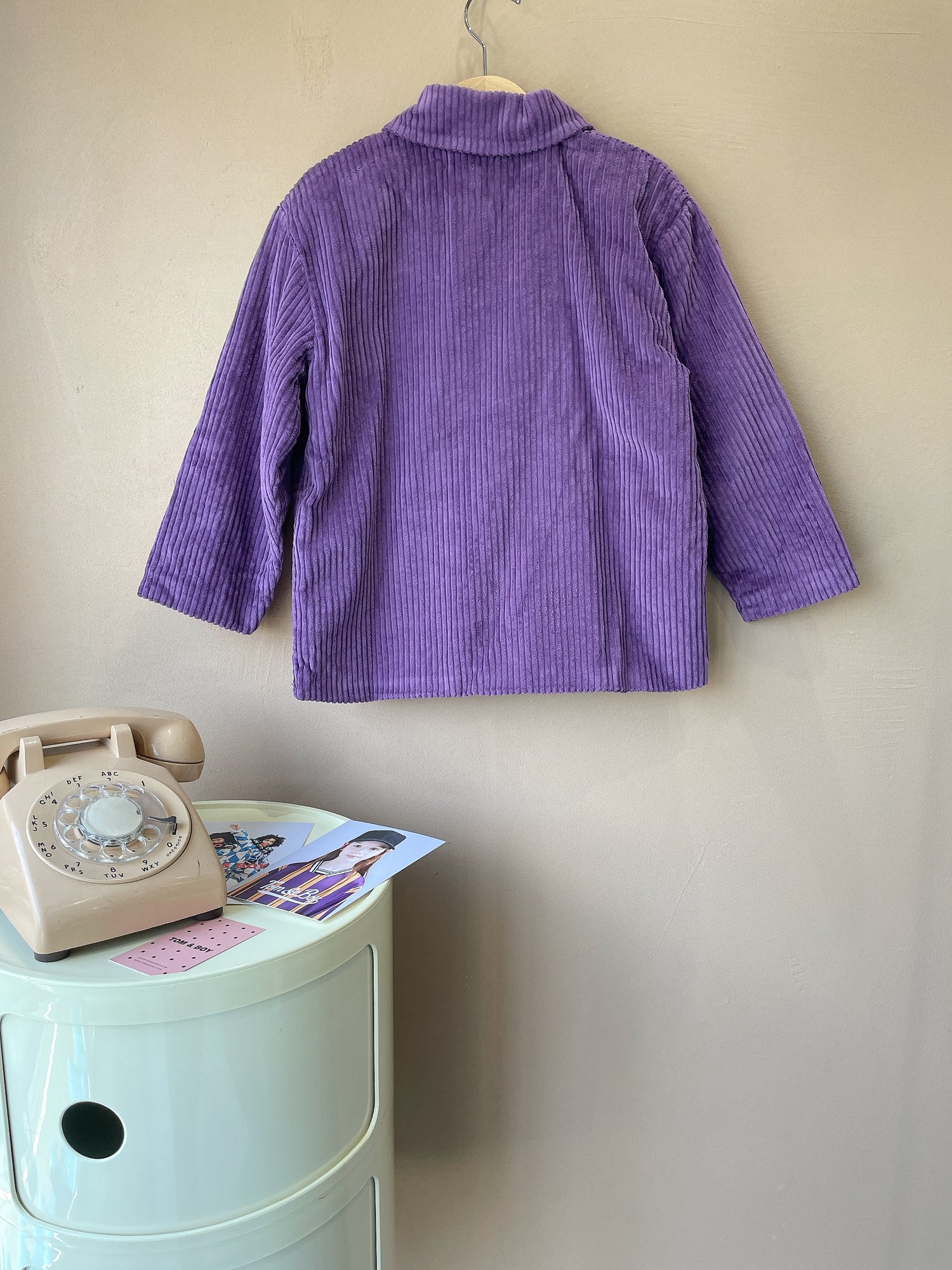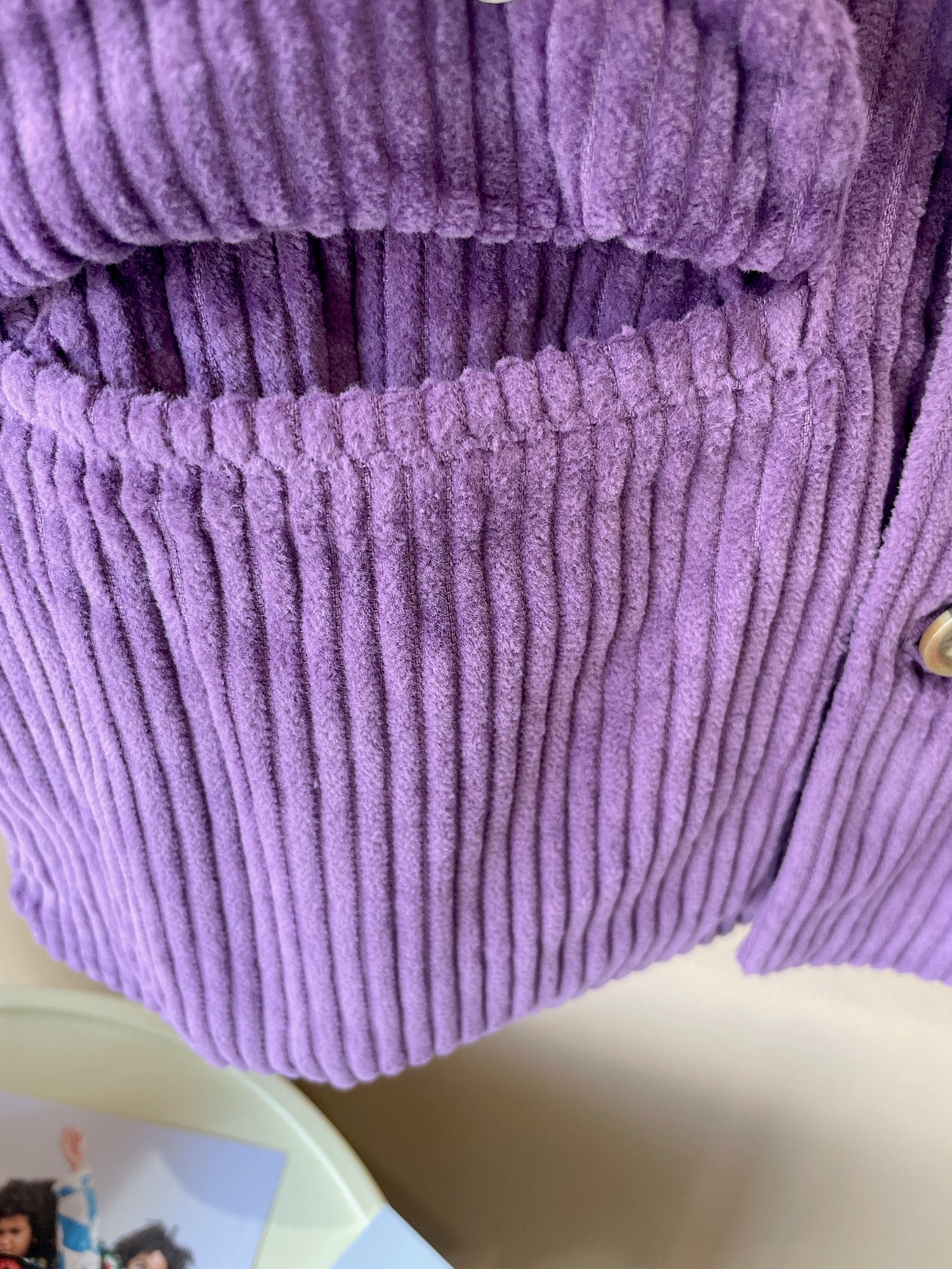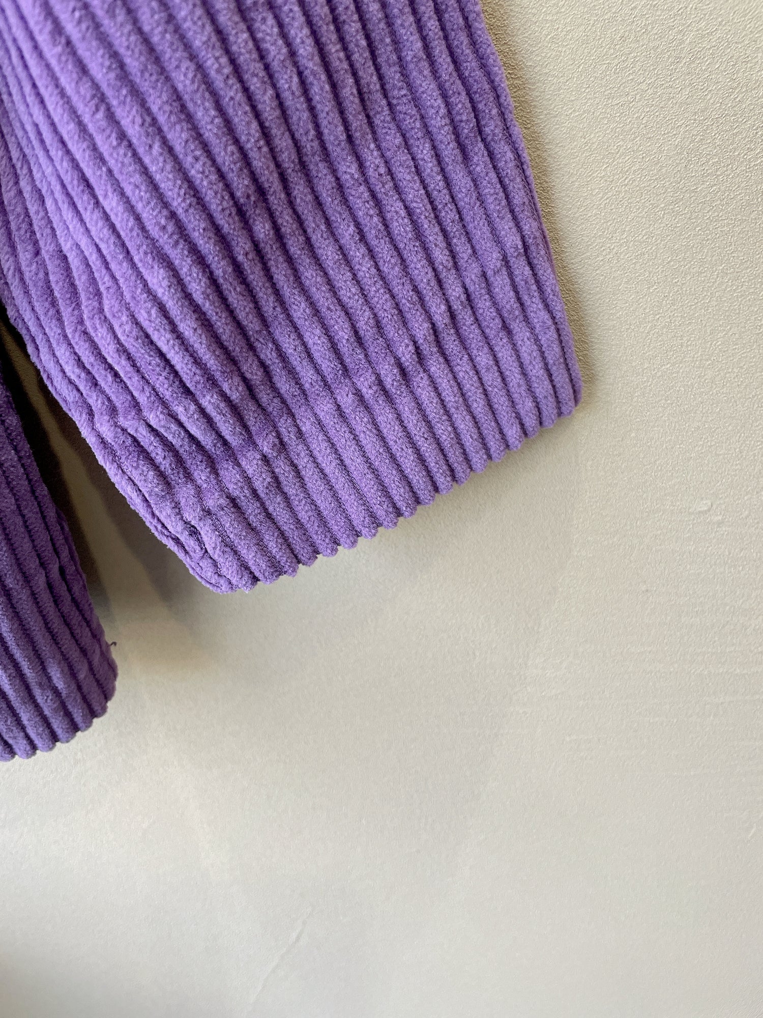 StrawberryJellyのパッチがさりげないコーデュロイジャケット。裏地がついているので長い季節で着用できる。