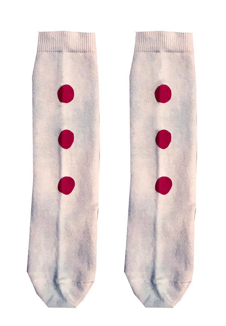 ライトブルーパープル系ベースのソックスにハンドペイントのダークフューシャのドット