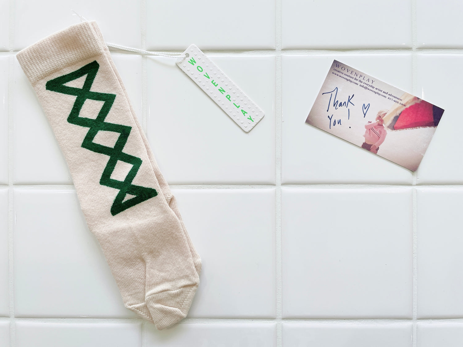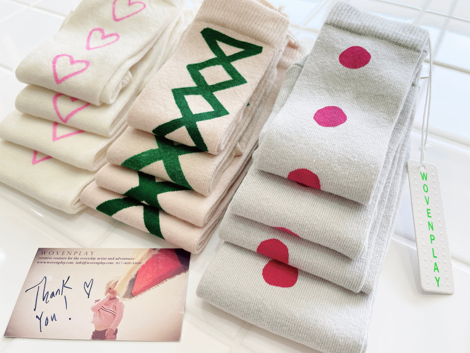 貴婦人のコルセットの様なリボンが描かれたソックス。